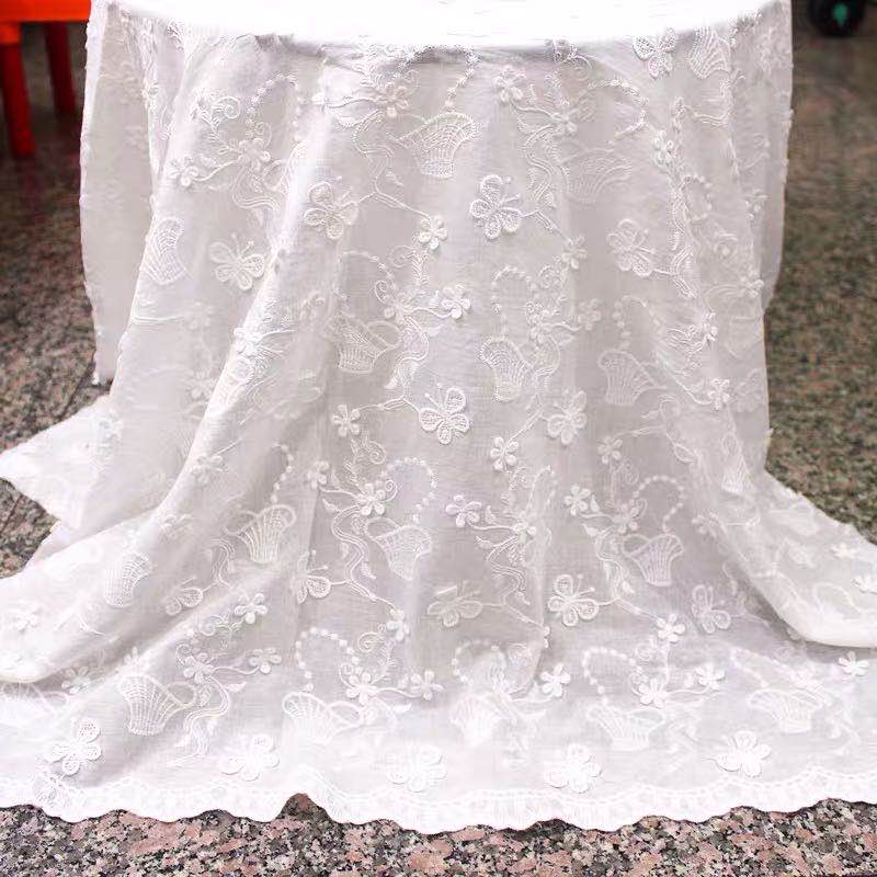 綿レース生地 マスク用生地 綿100% A031 カット 蝶々柄 刺繍 コットンレース ワークレース 130cm*45cm 生地 刺繍レース レース生地 刺繍レース生地 綿レース マスク生地 手作りマ