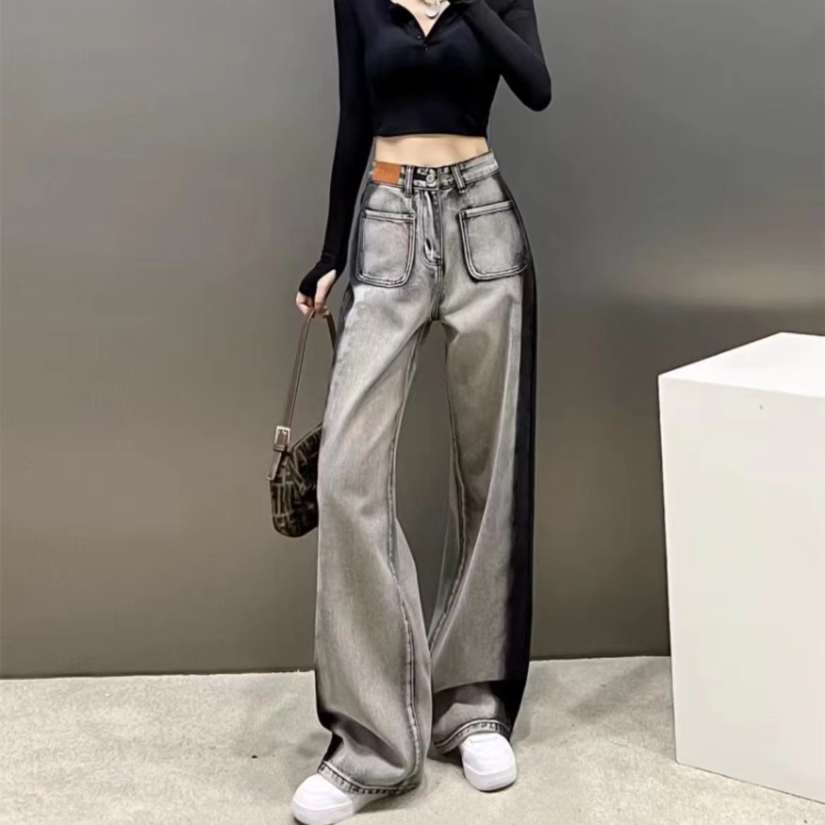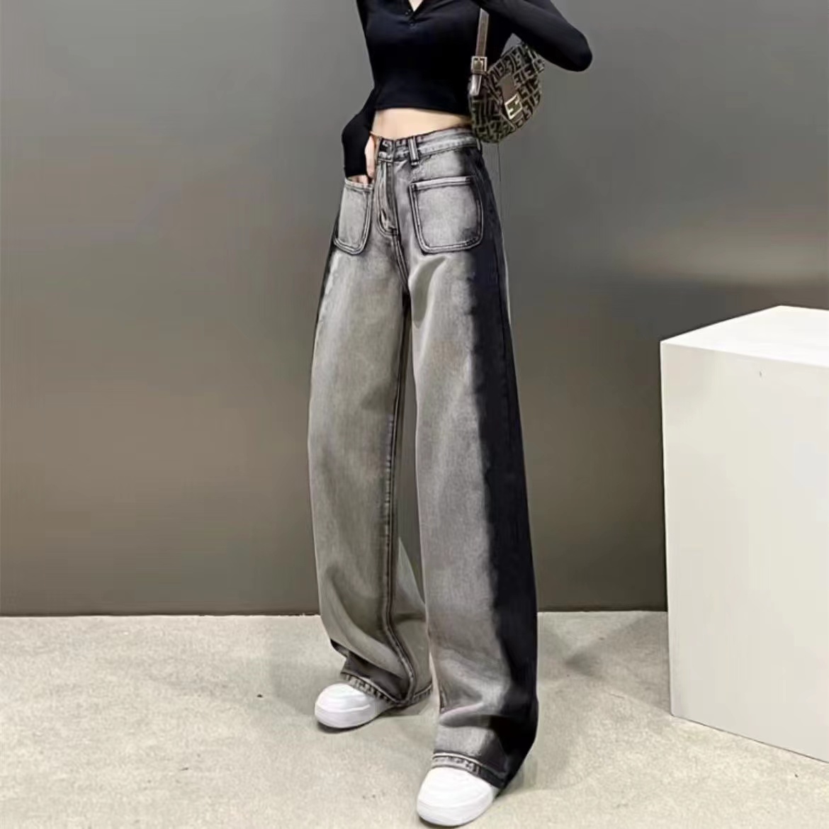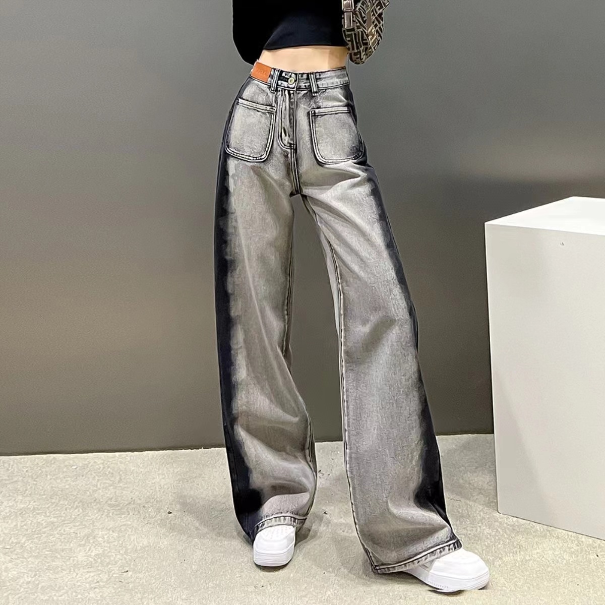 ワイドパンツ レディース メンズ 黒 ブラック ハイウエスト ボトムス ズボン ダボパン パンツ 春夏 ポケット ゆったり ワイド ハイウェスト メンズライク カジュアル ファッション おしゃれ かっ