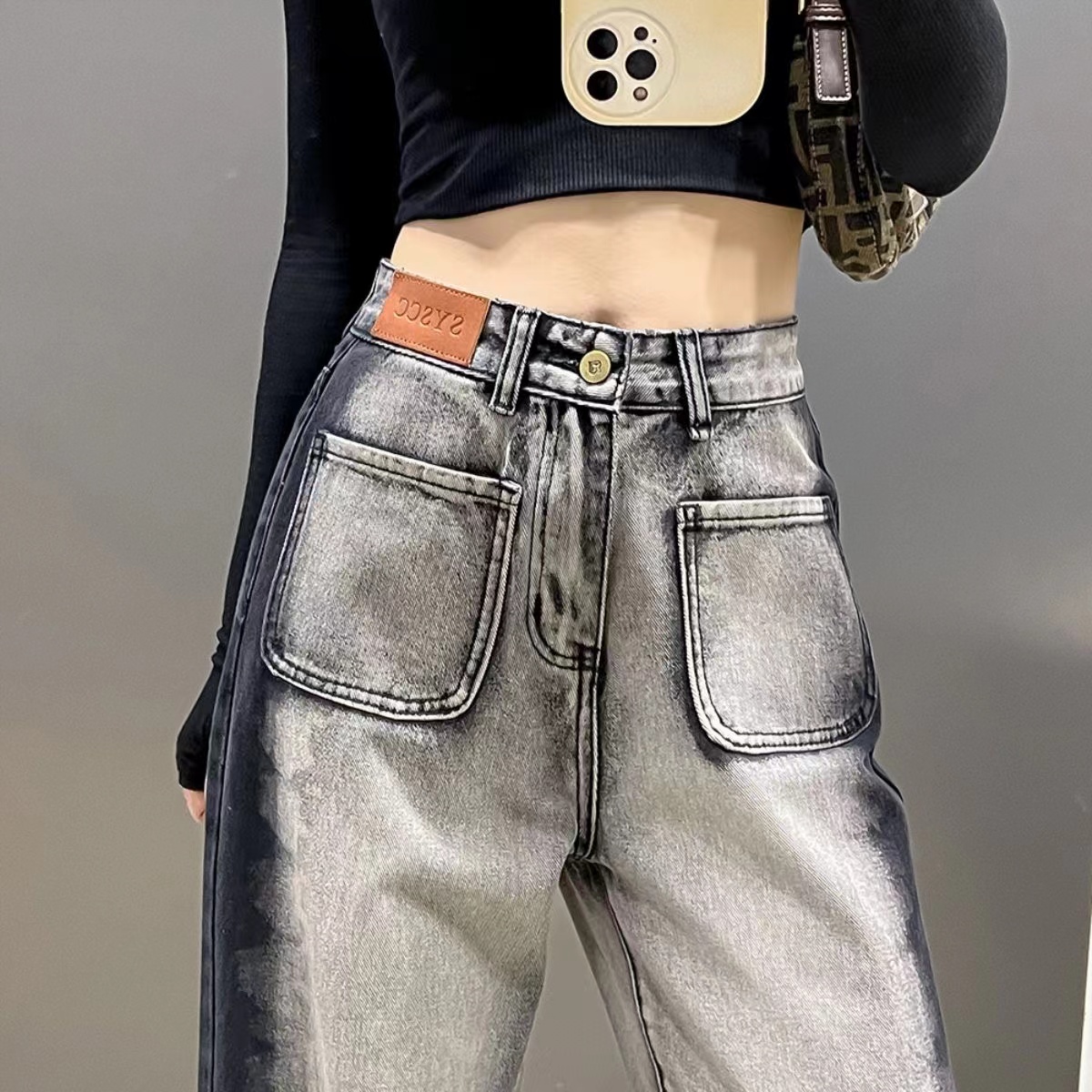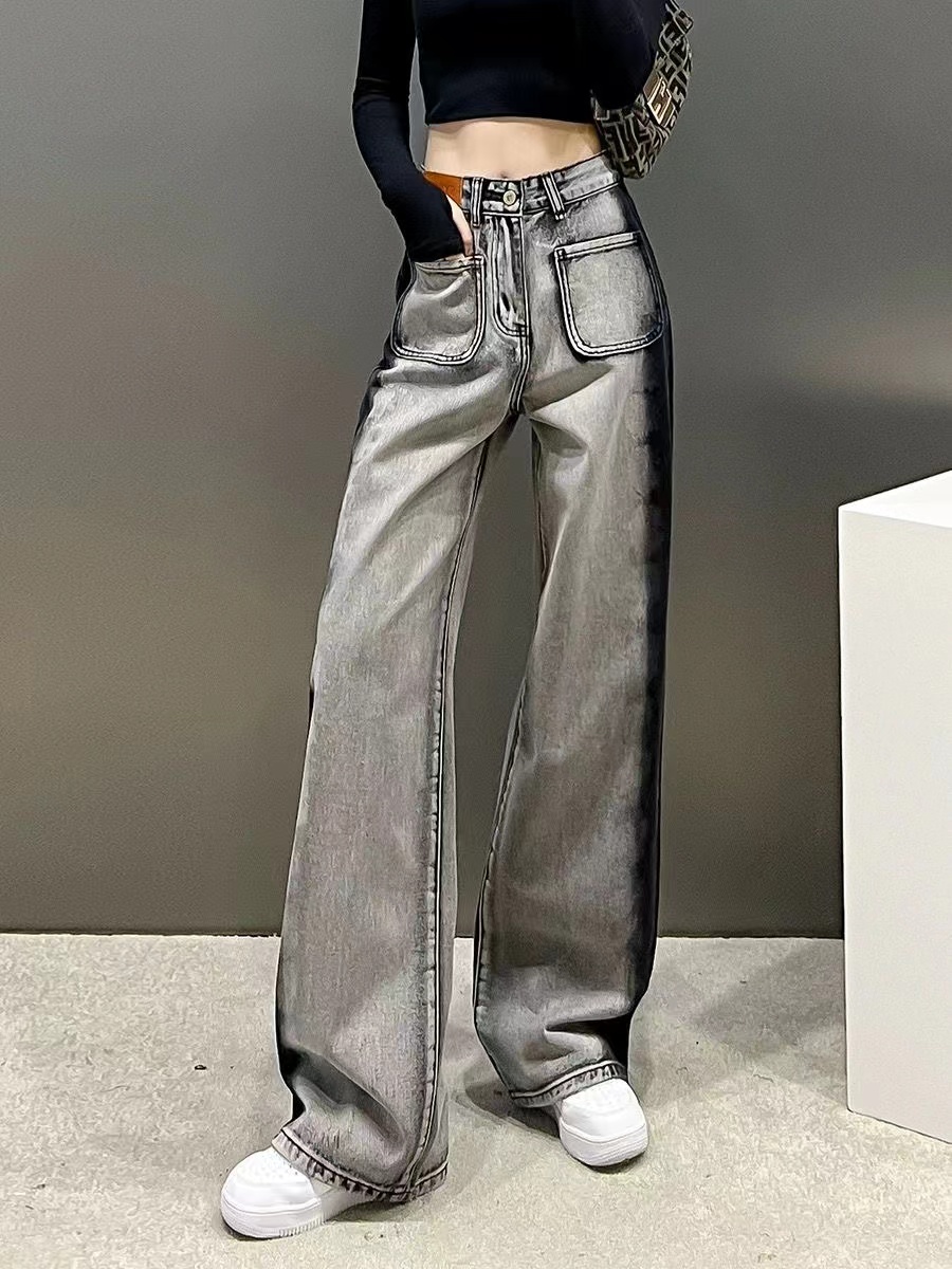 デニムパンツ ビジュー付き