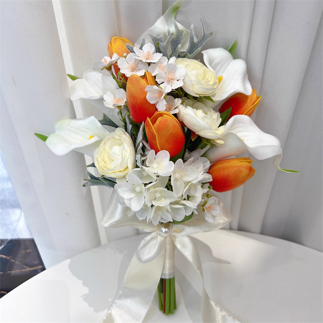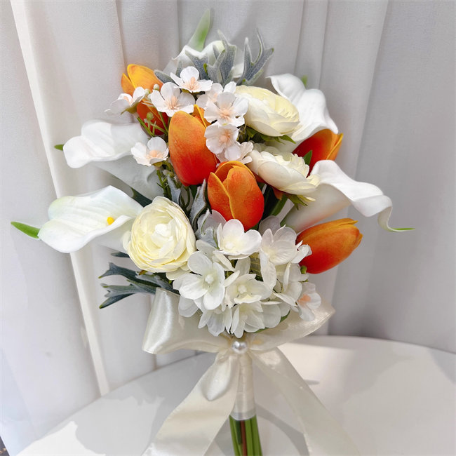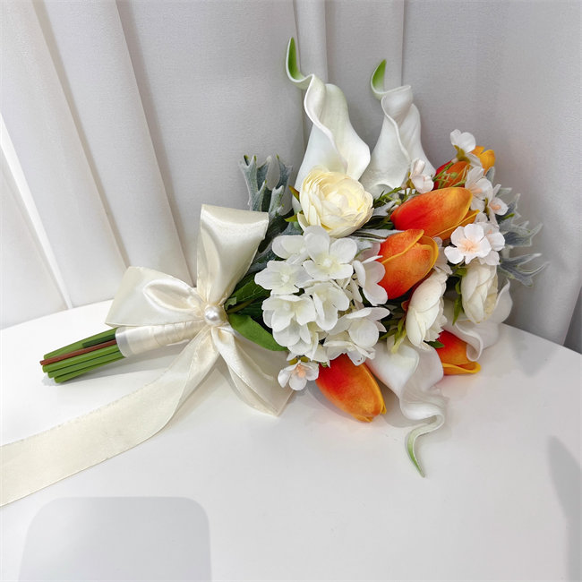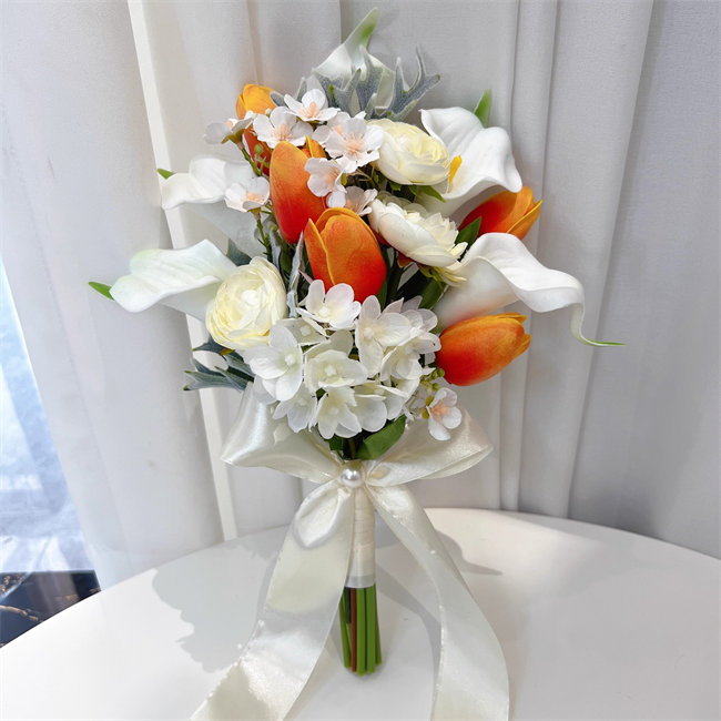 ホワイト+オレンジ カラー 白 花束