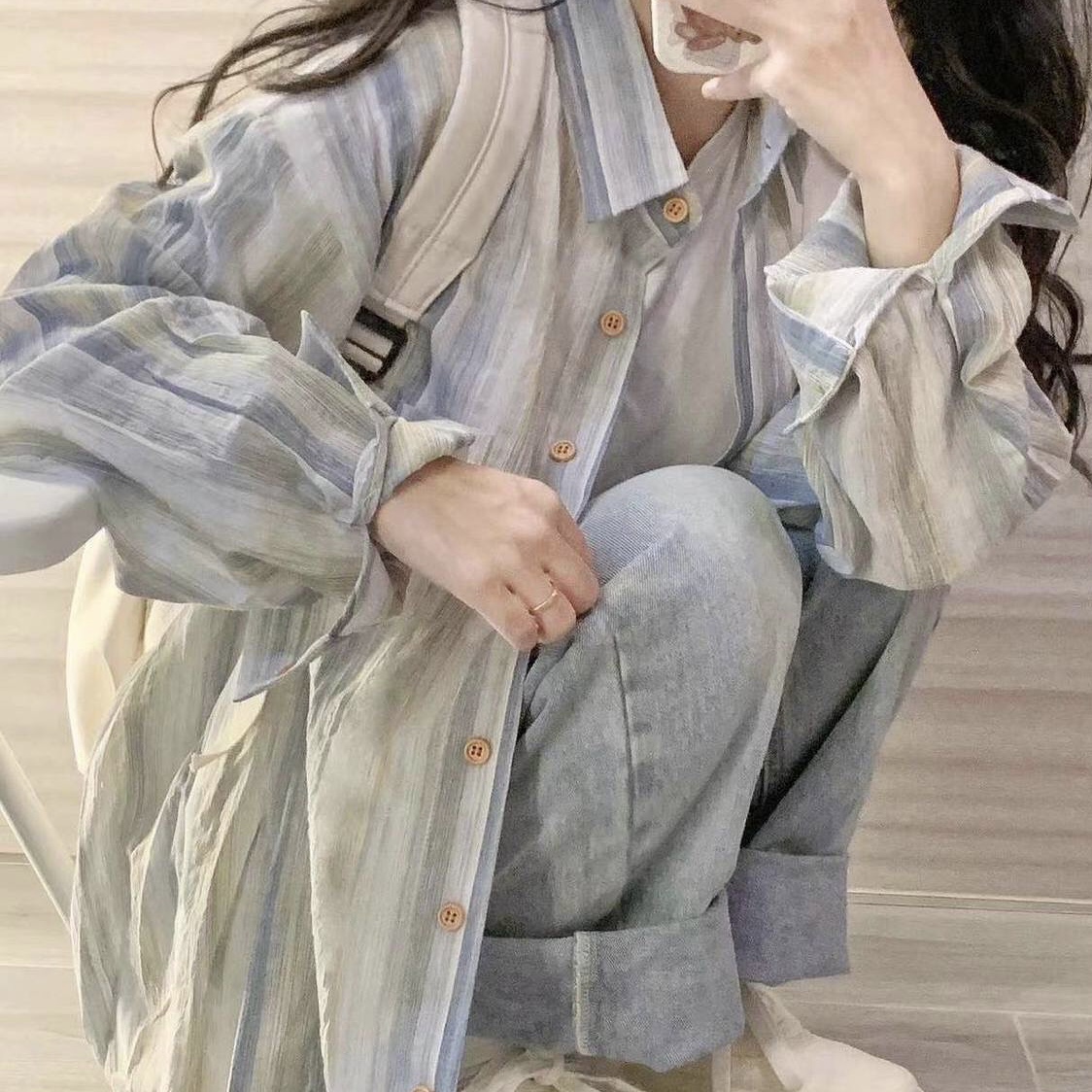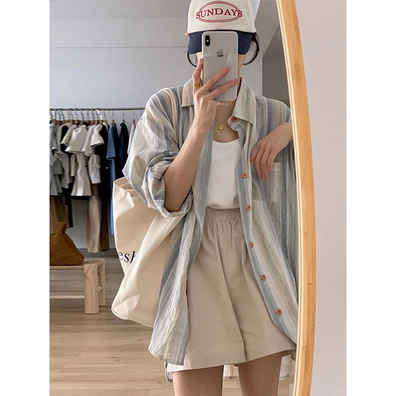 シャツ レディース ストライプカラー