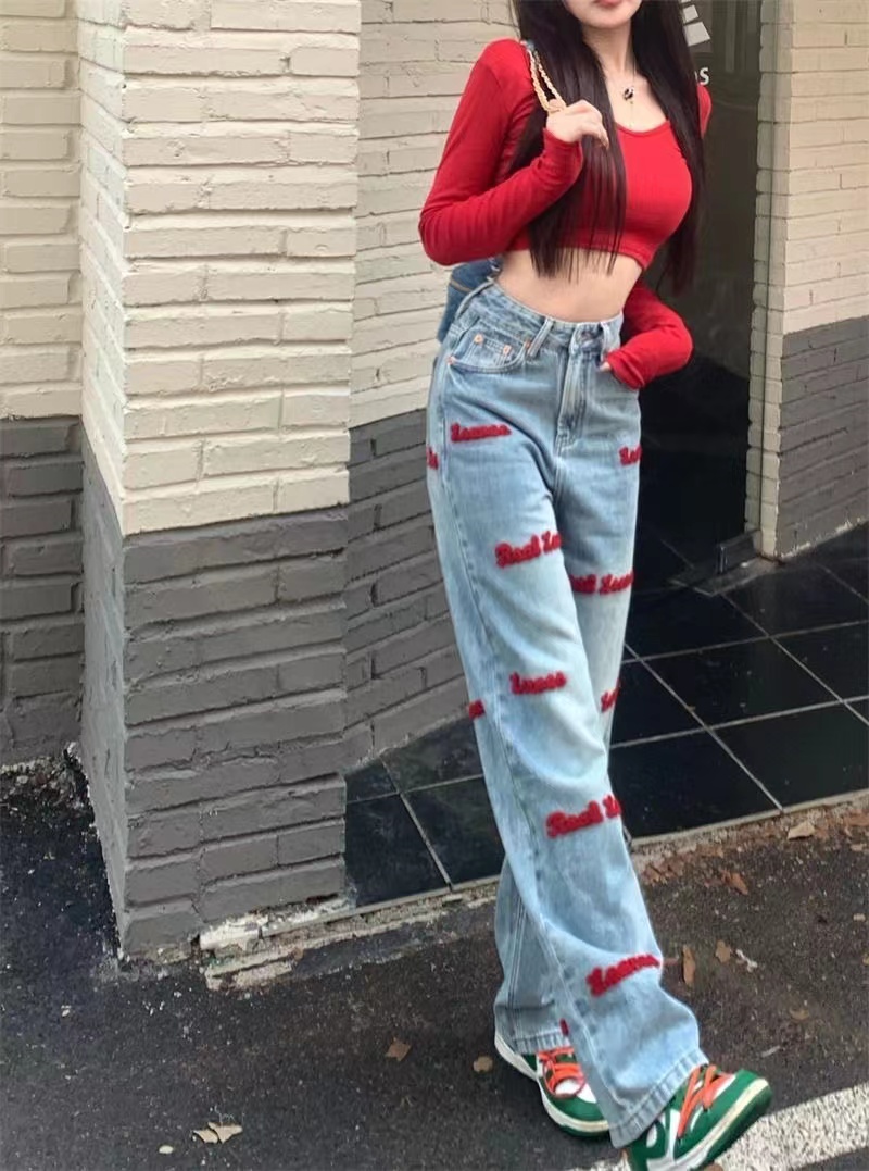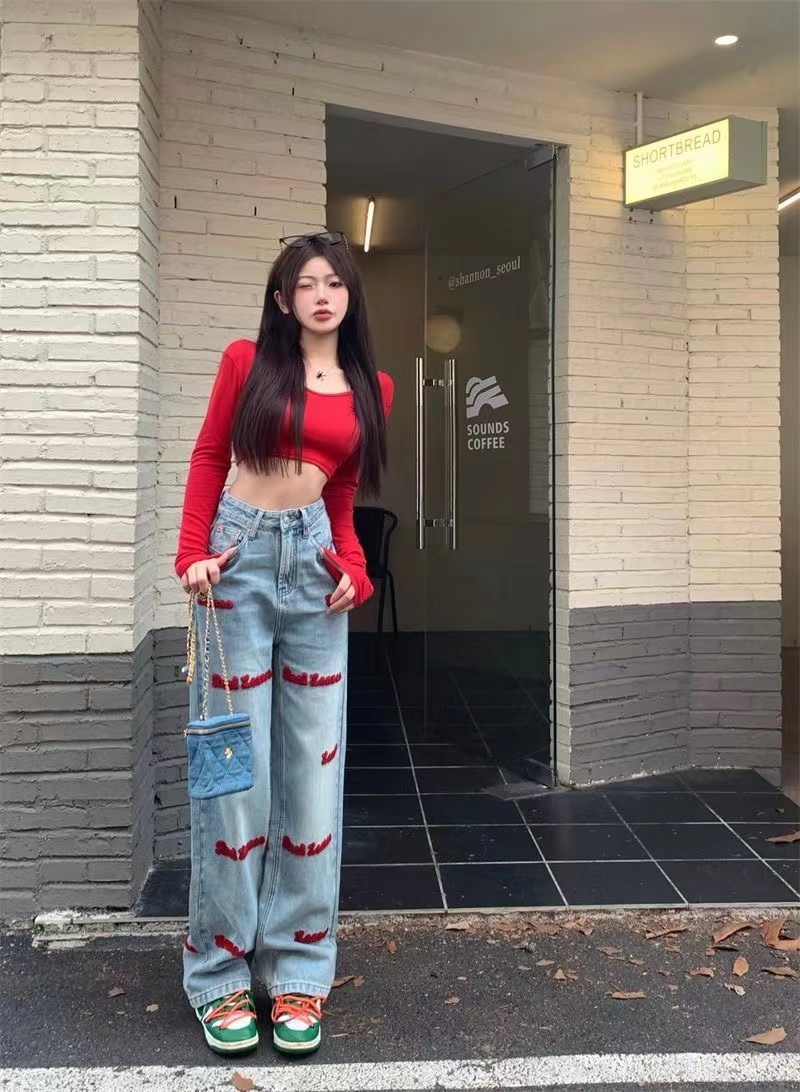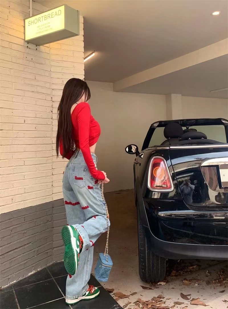 デニムパンツ ビジュー付き