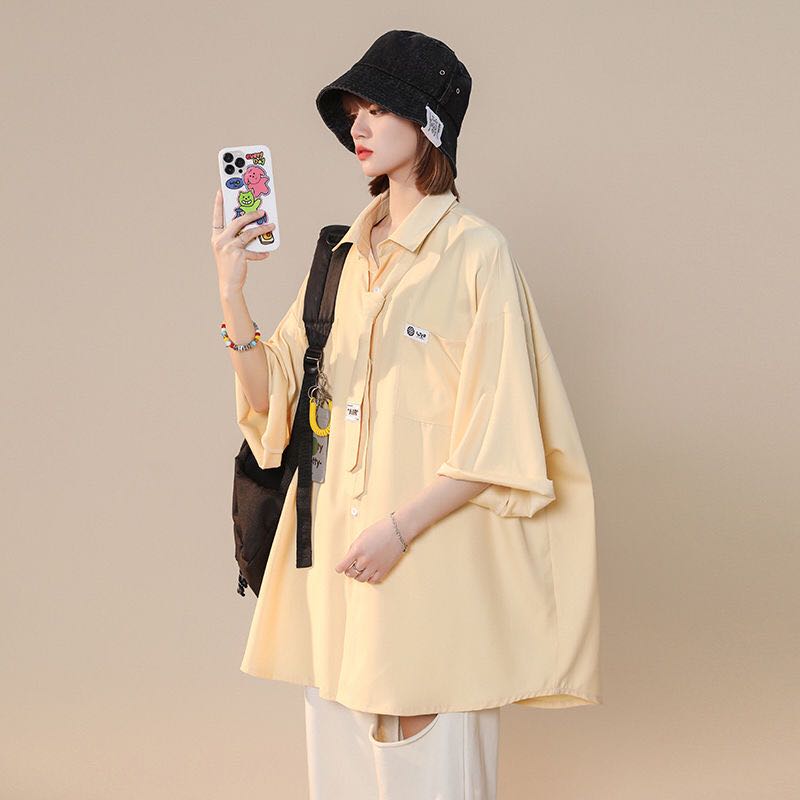 シアースリーブ ドッキングシャツ ボウタイシャツブラウス