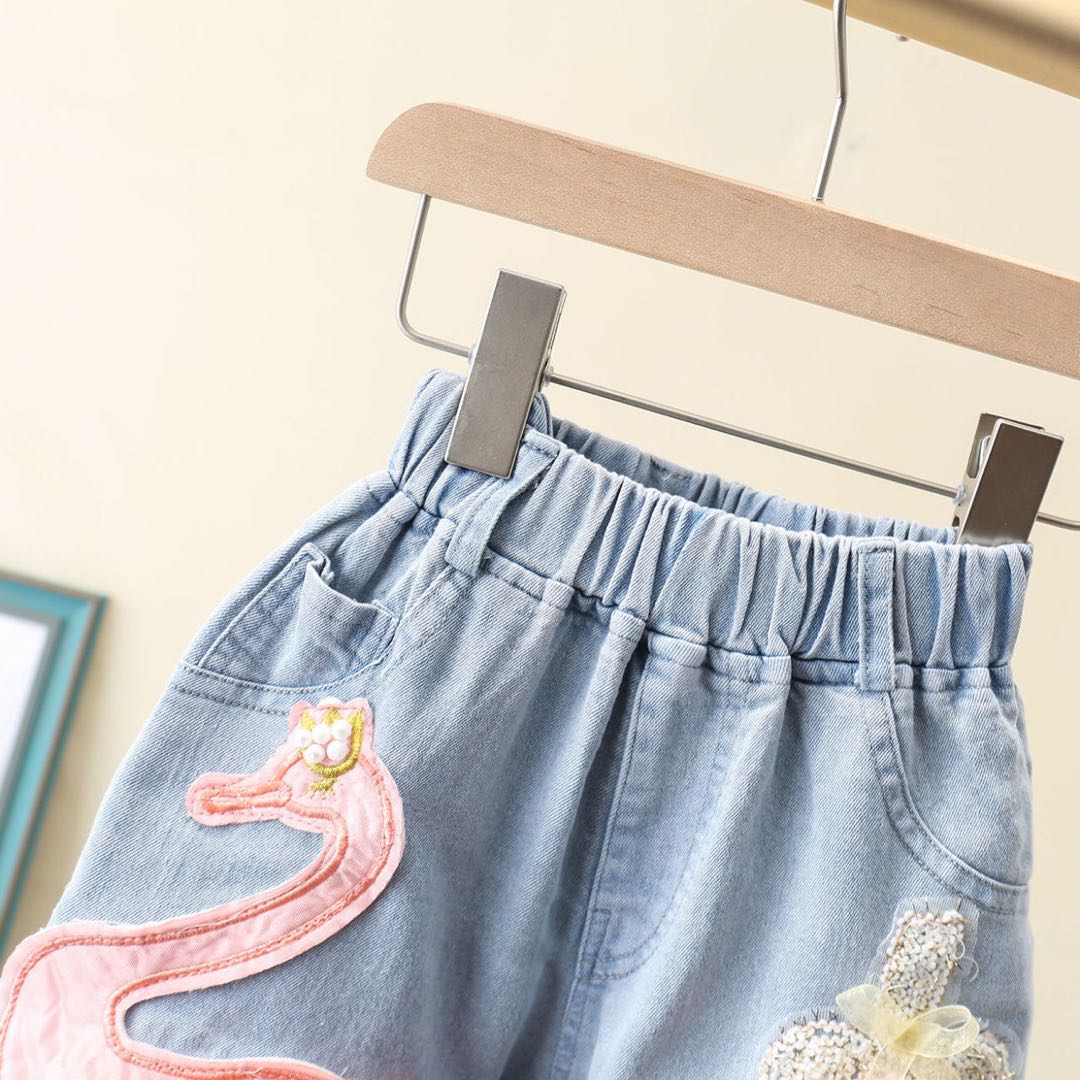 デニムパンツ ビジュー付き