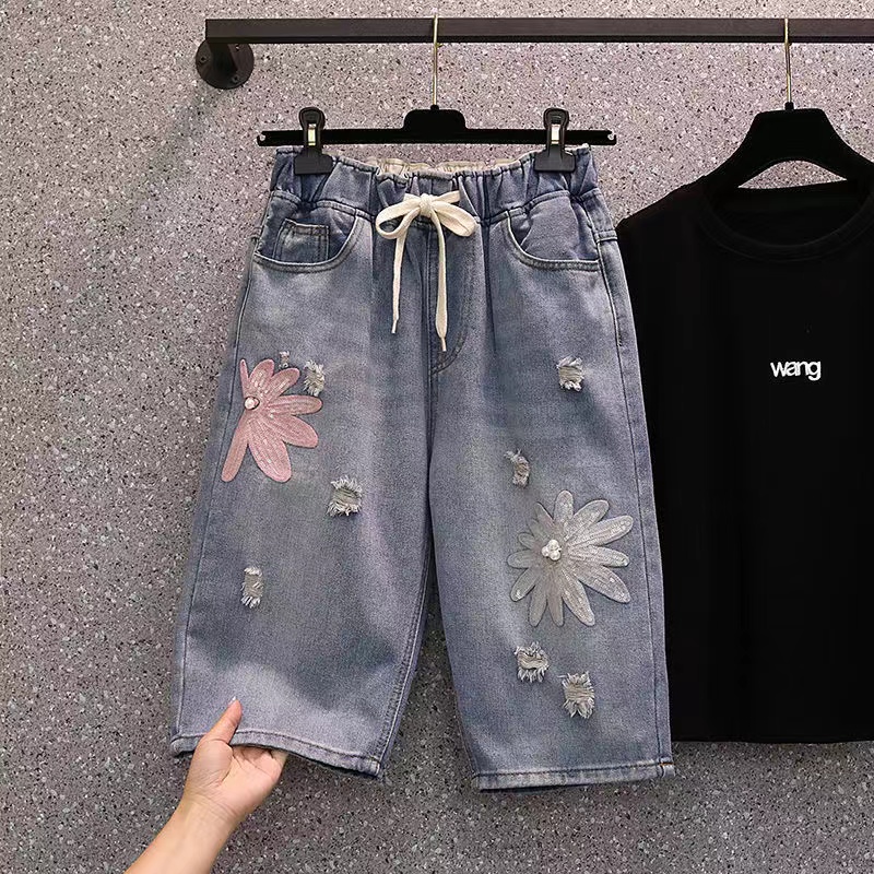 デニムパンツ ビジュー付き