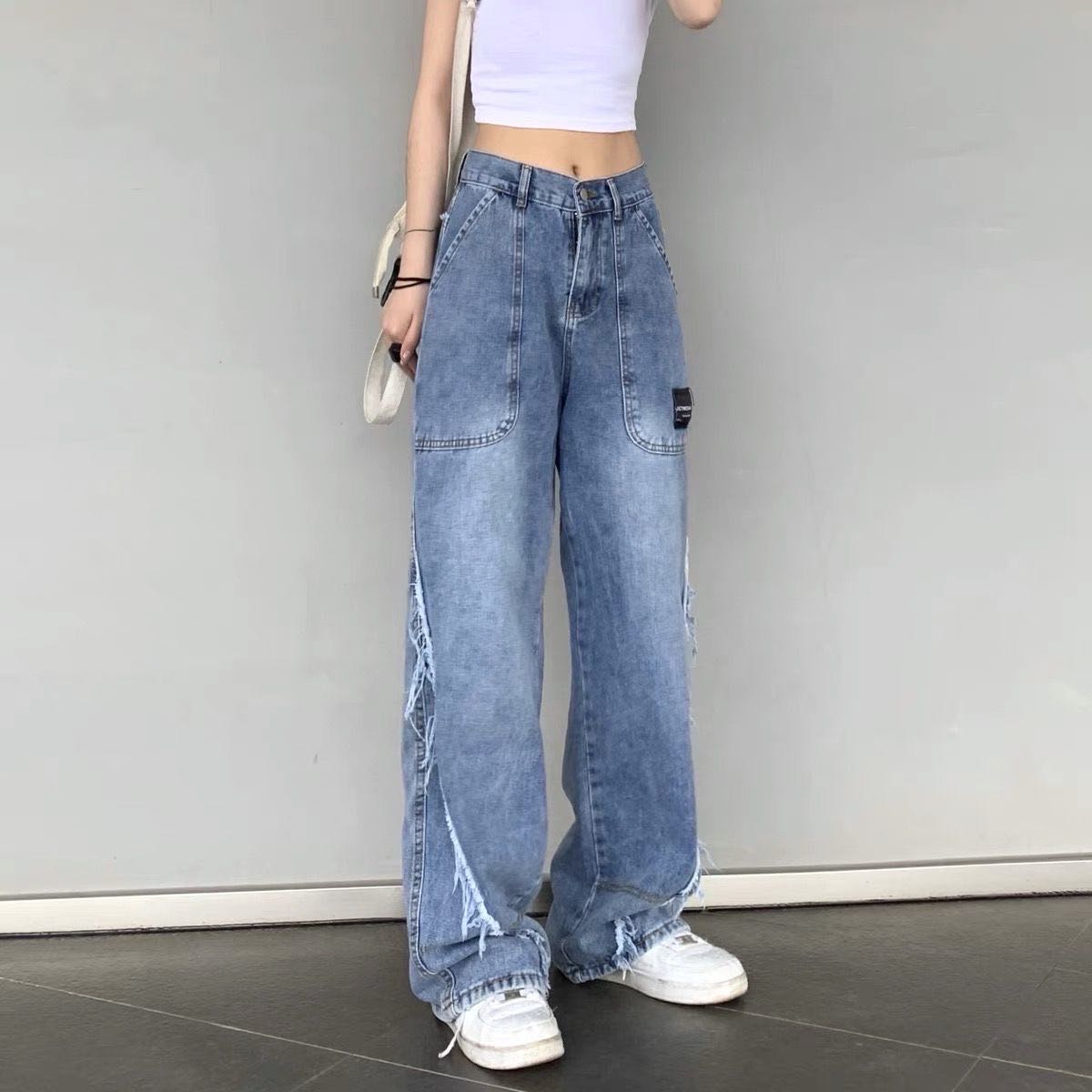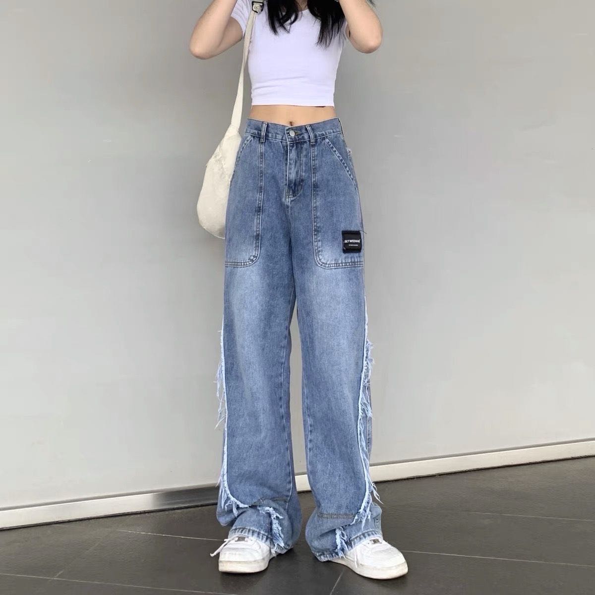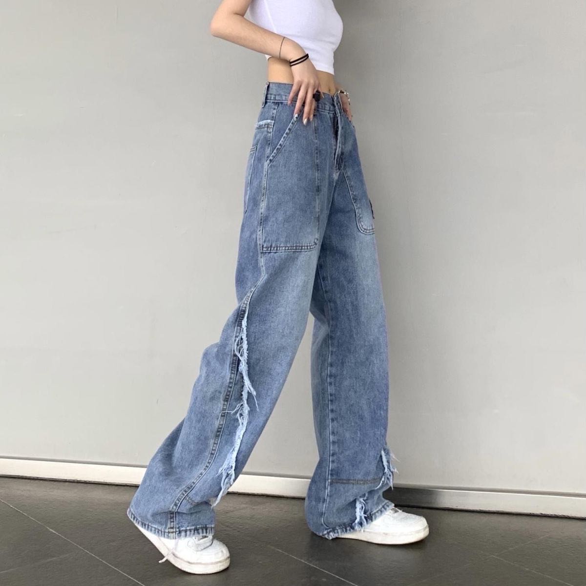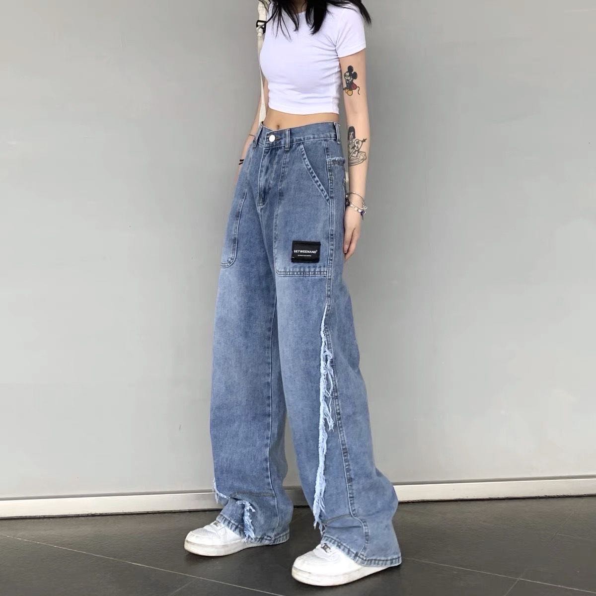 デニムパンツ ビジュー付き