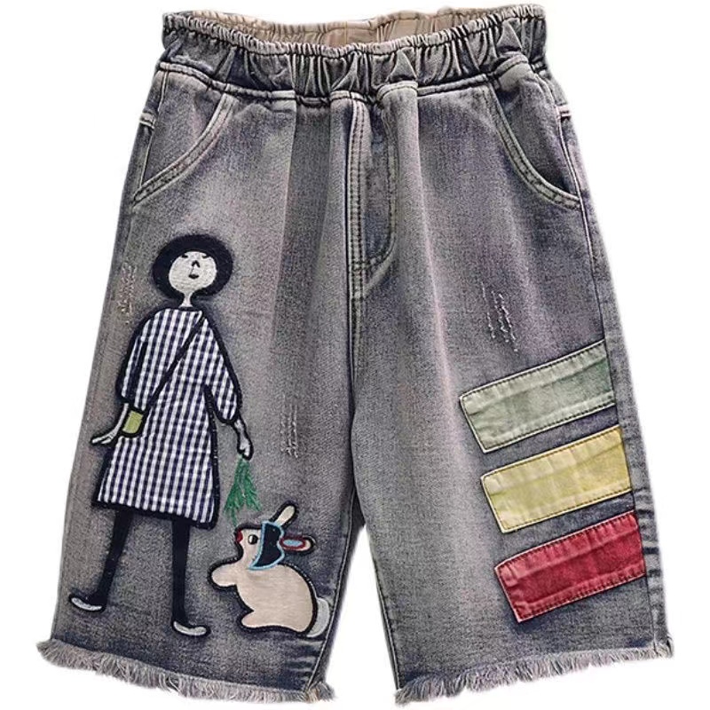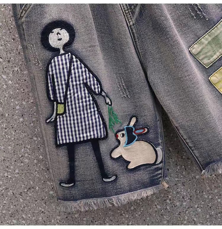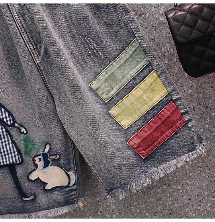 デニムパンツ ビジュー付き