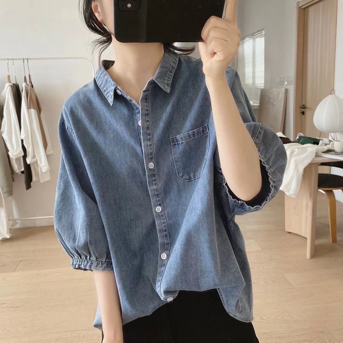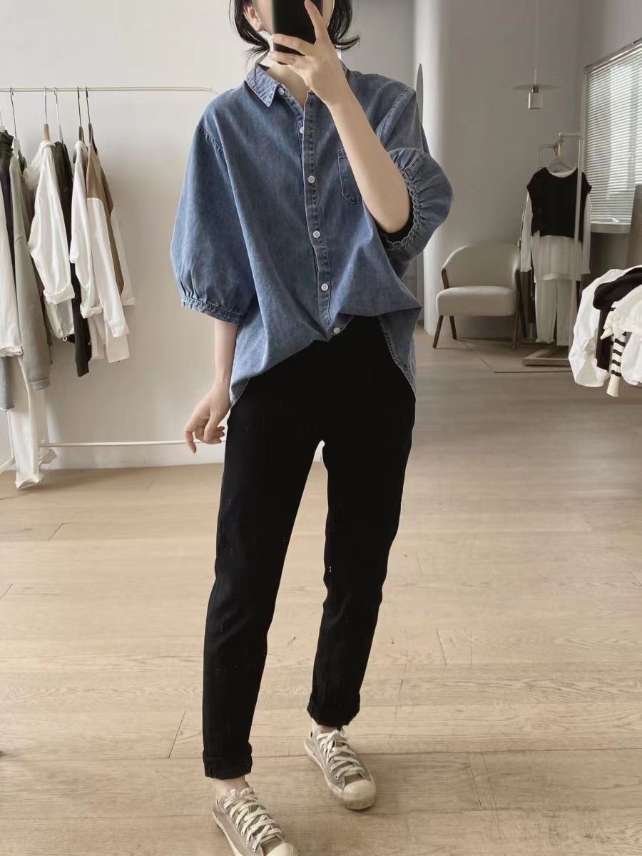 デニムシャツ レディース ブラウス 半