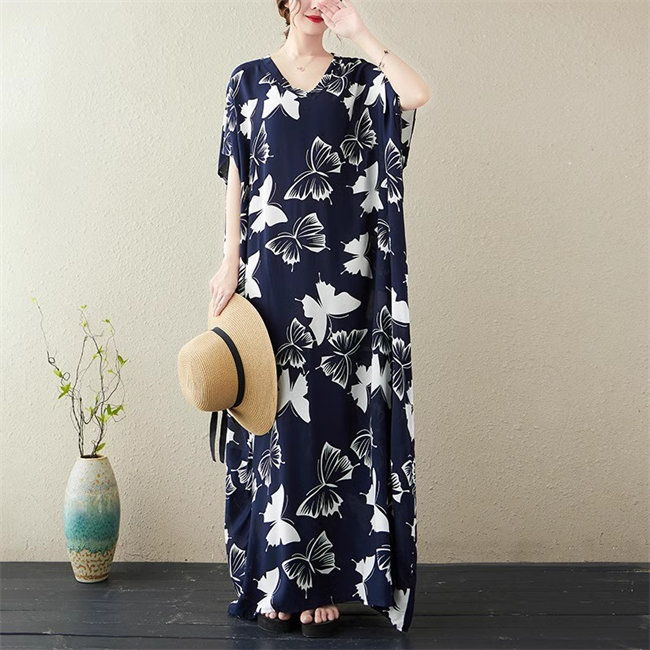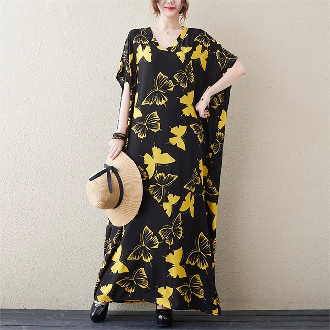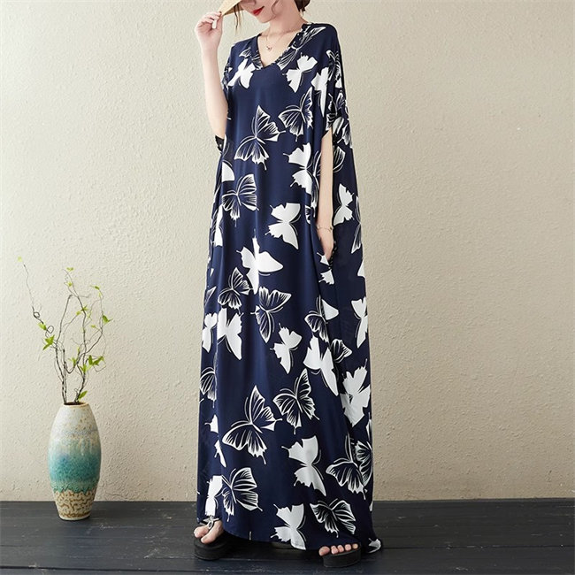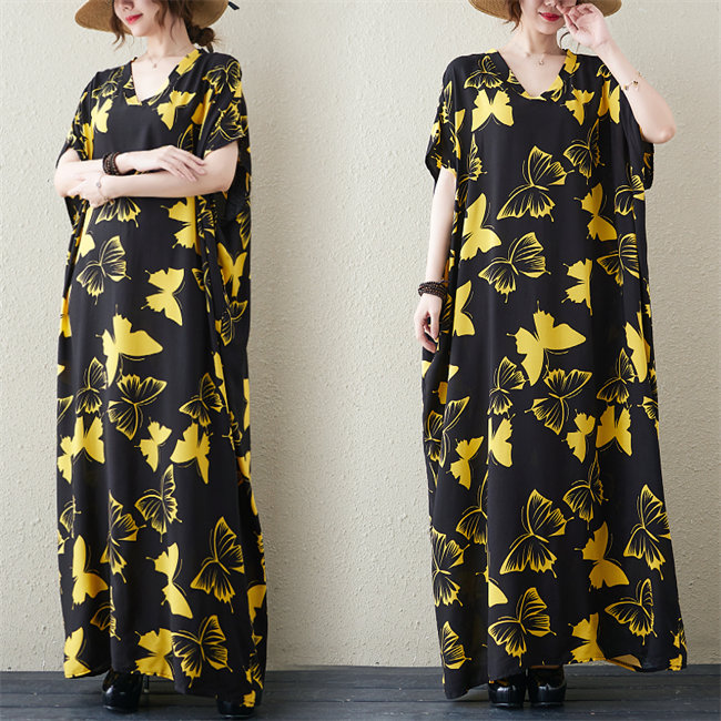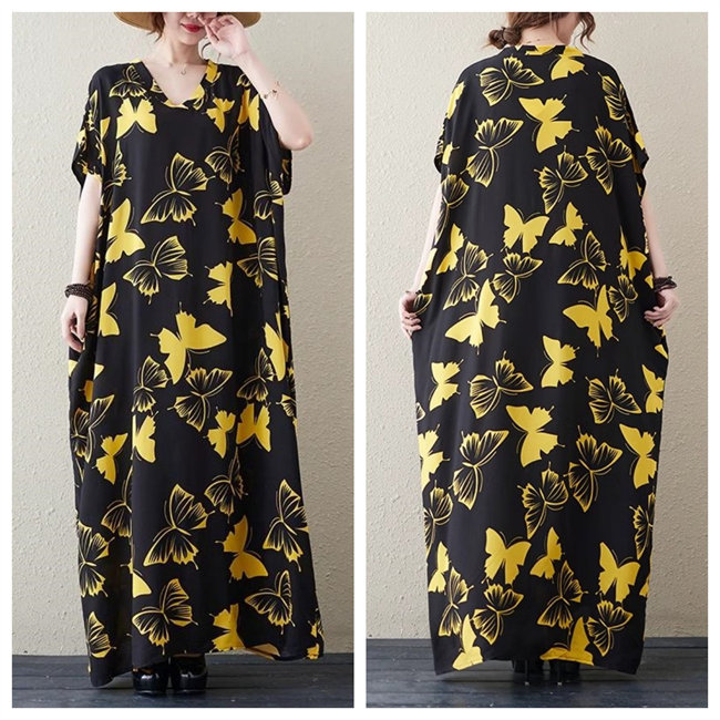 ブルー イエローレディースロングワンピ