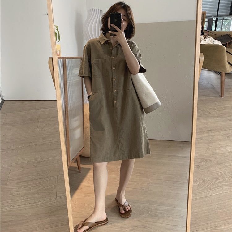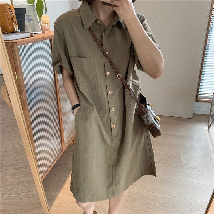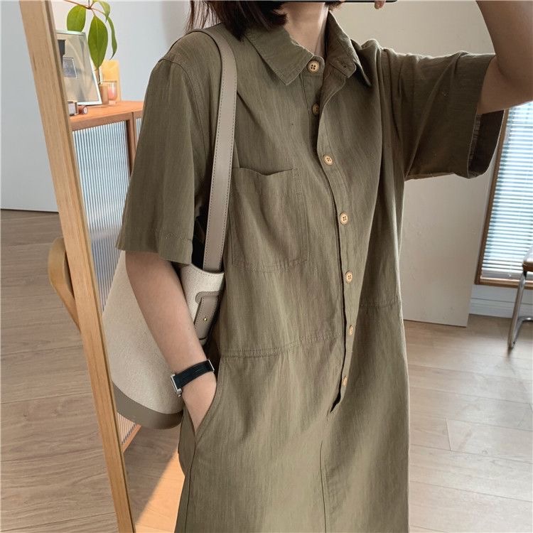 シャツワンピース 半袖 ロング ワンピ