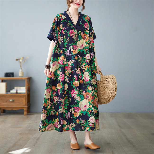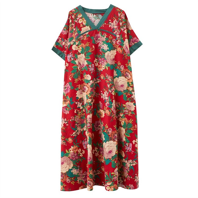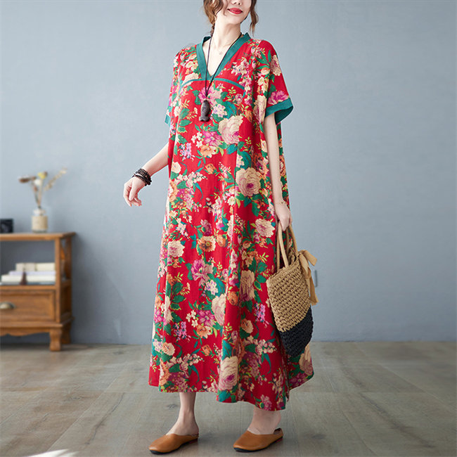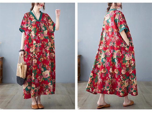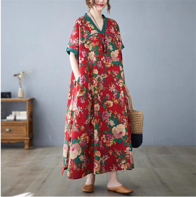 ネイビー レッドレディースロングワンピ