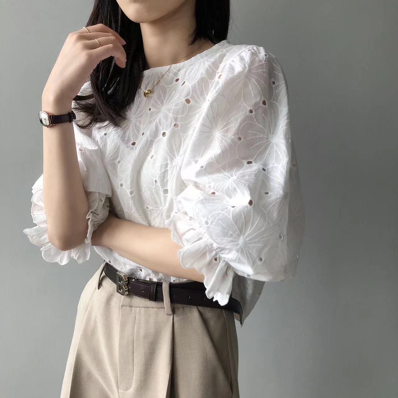 ブラウス レディース 七分丈袖 森ガー