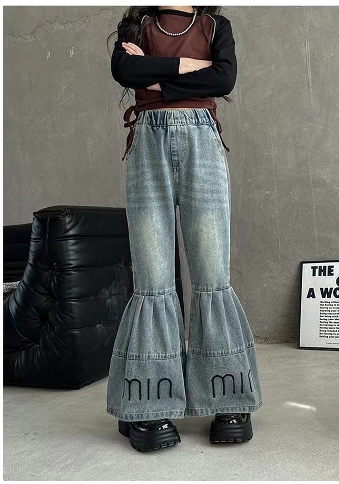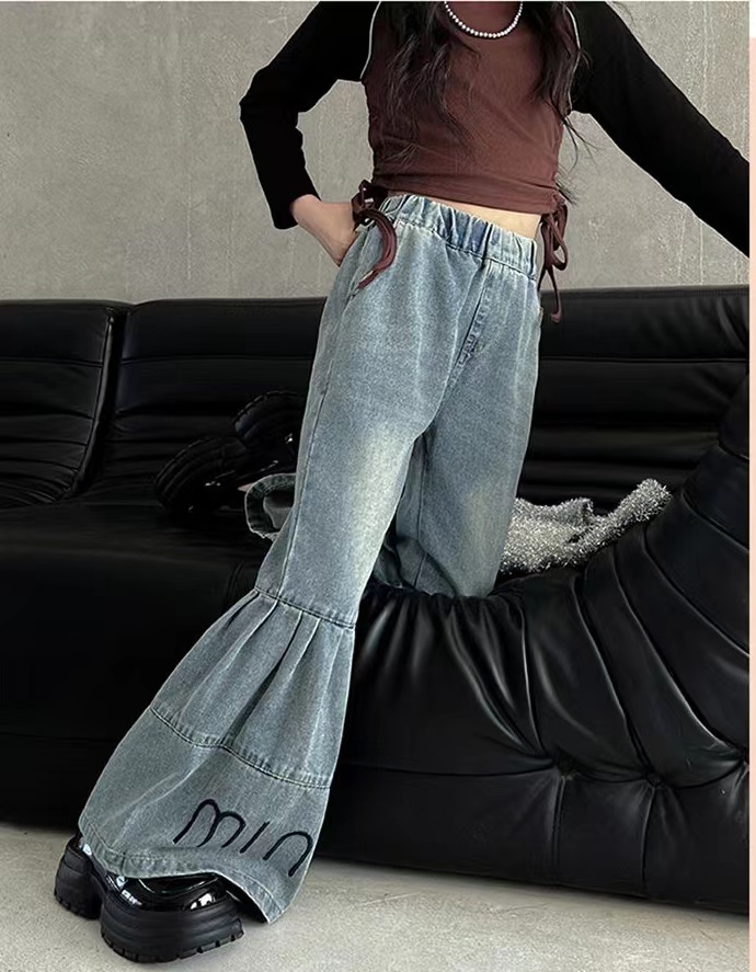 デニムパンツ ビジュー付き