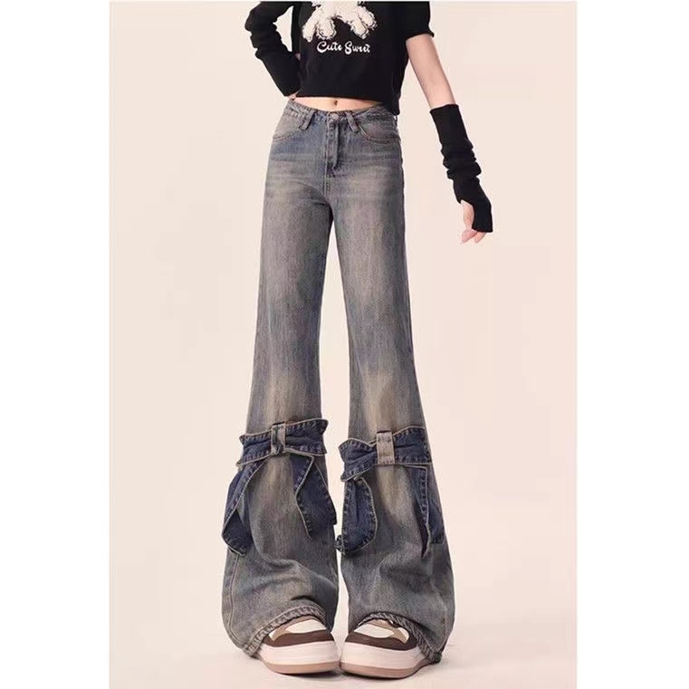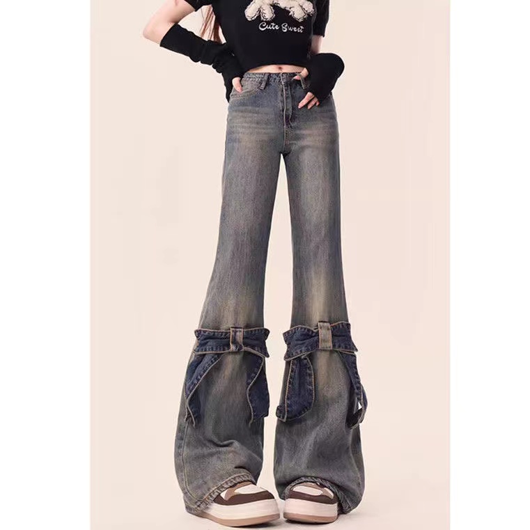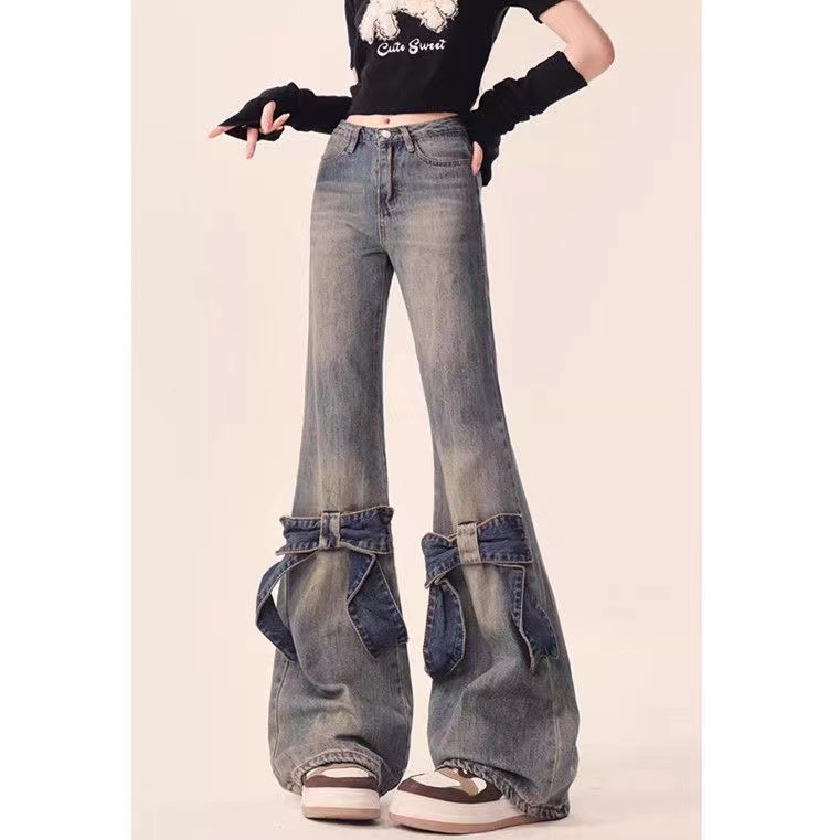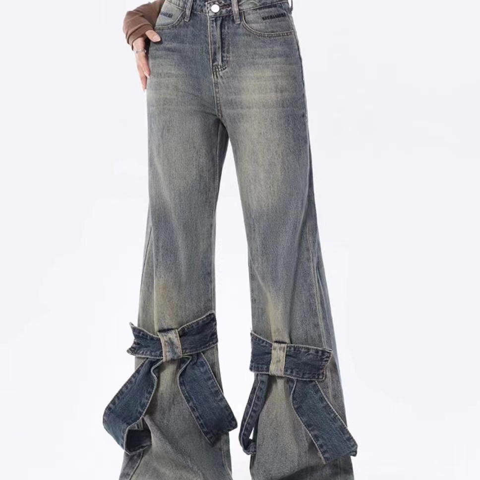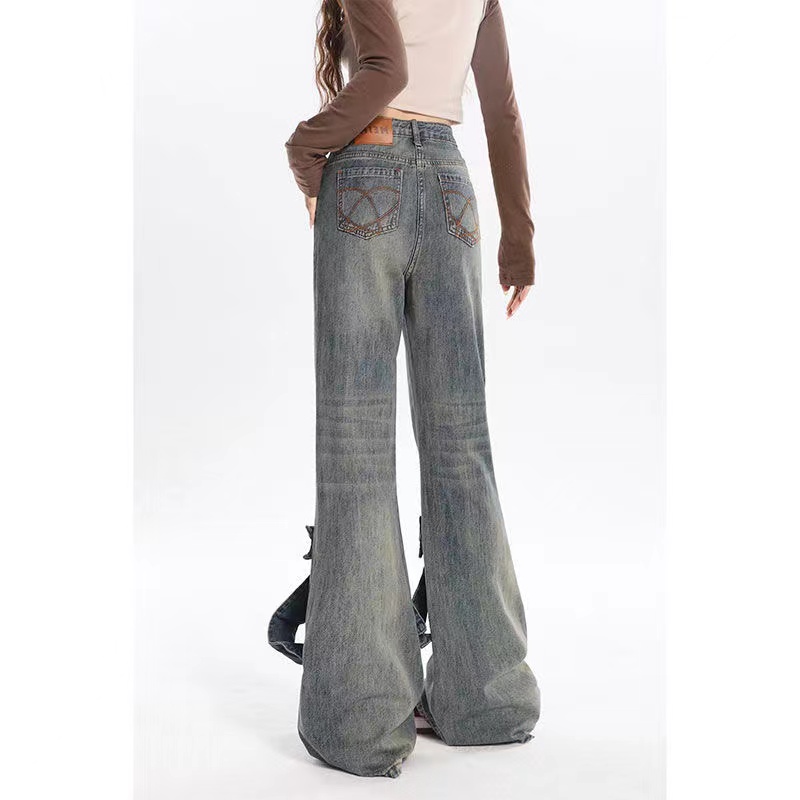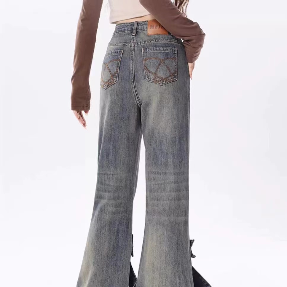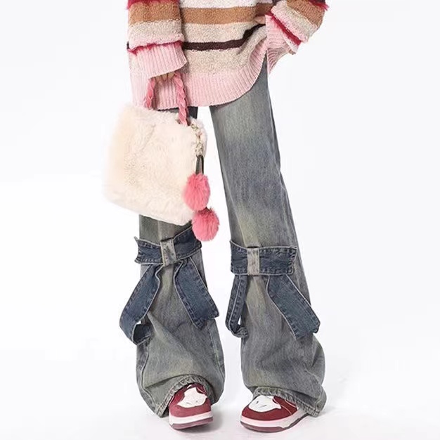 デニムパンツ ビジュー付き