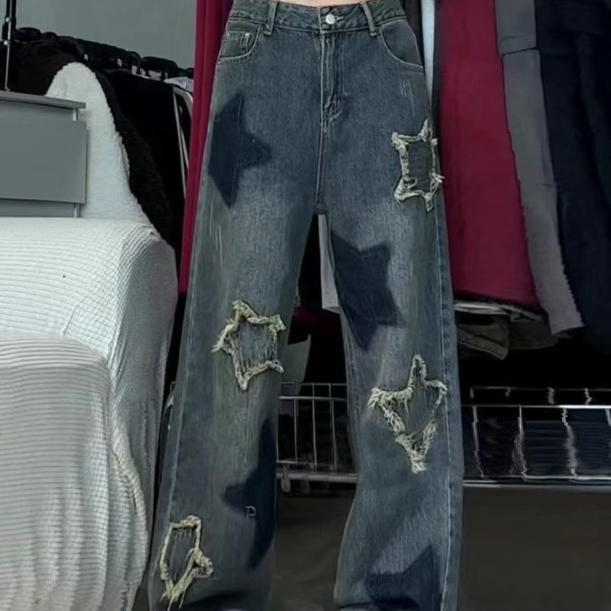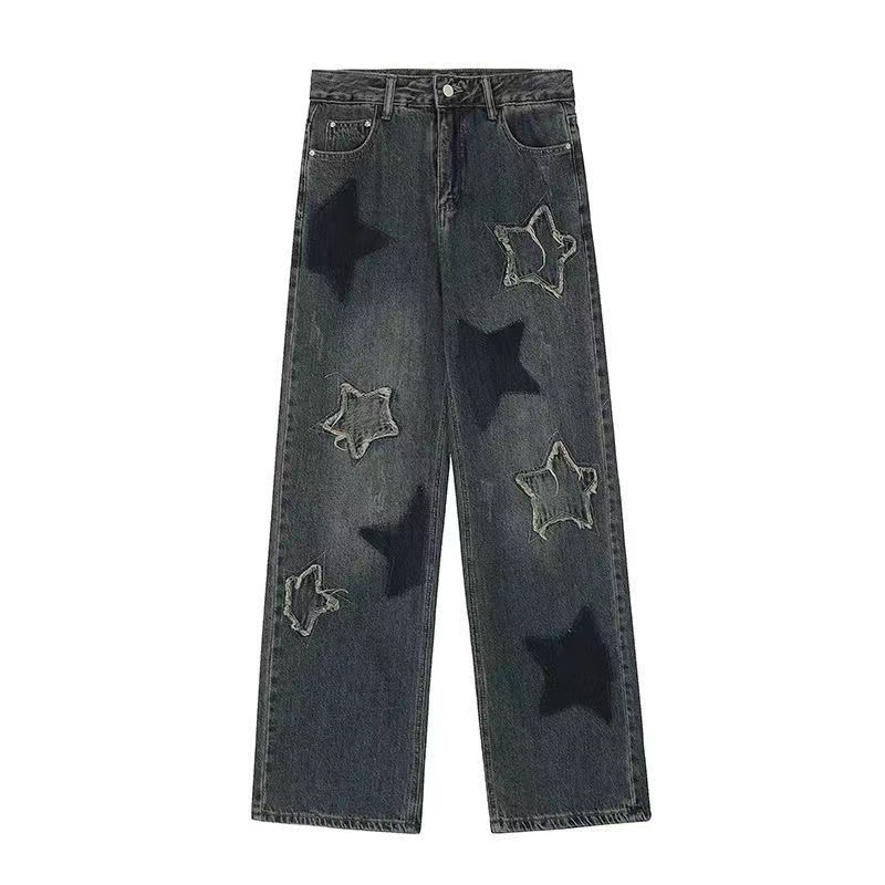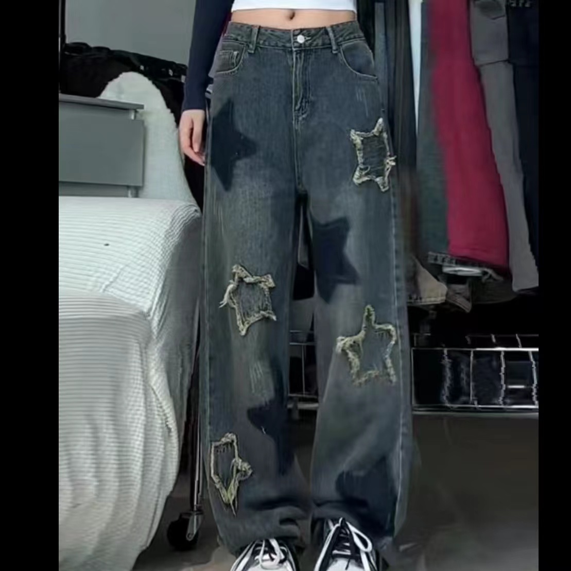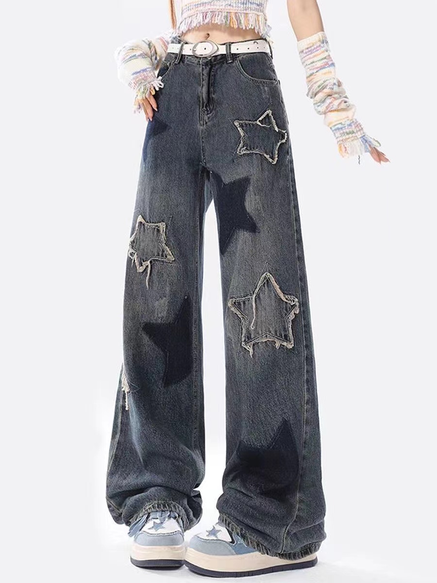 デニムパンツ レディース 美脚 星柄