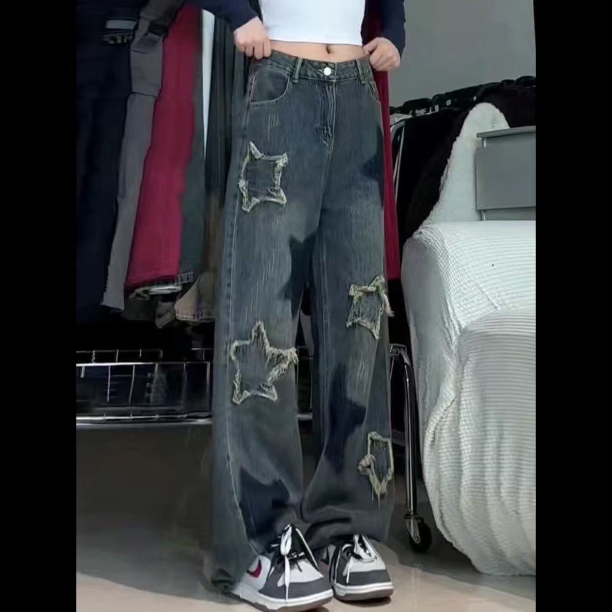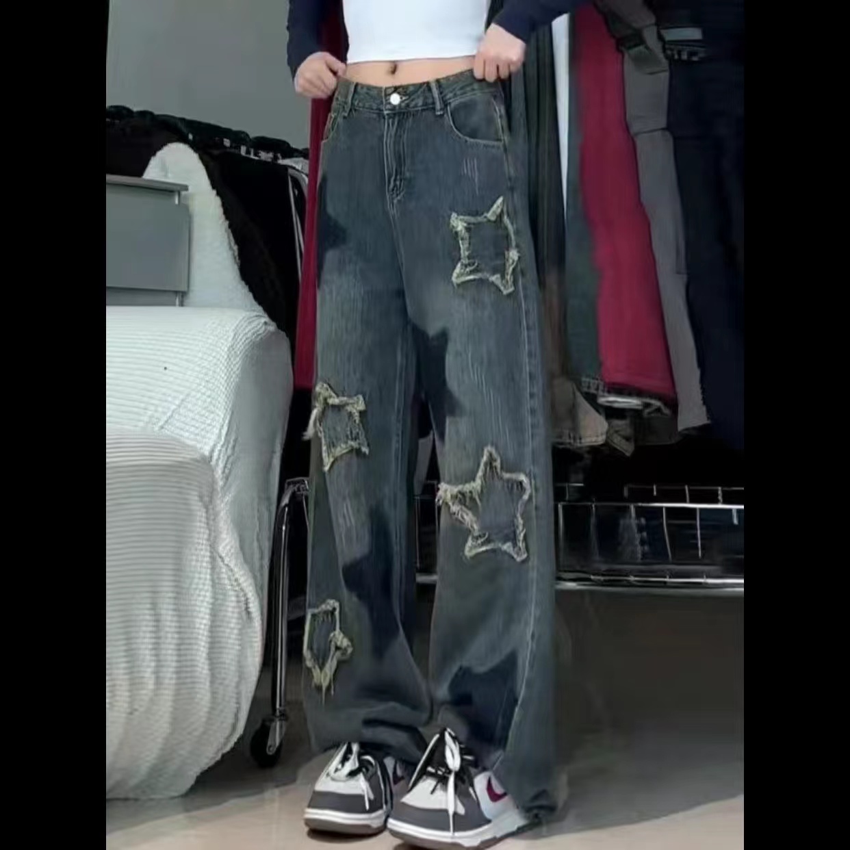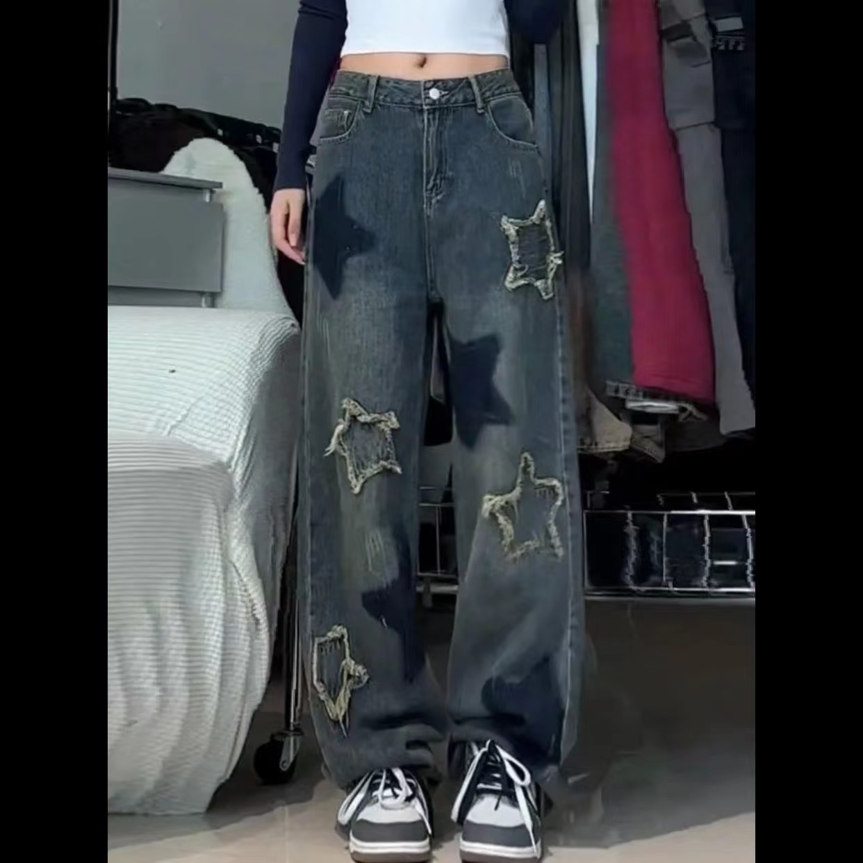 デニムパンツ レディース 美脚 星柄