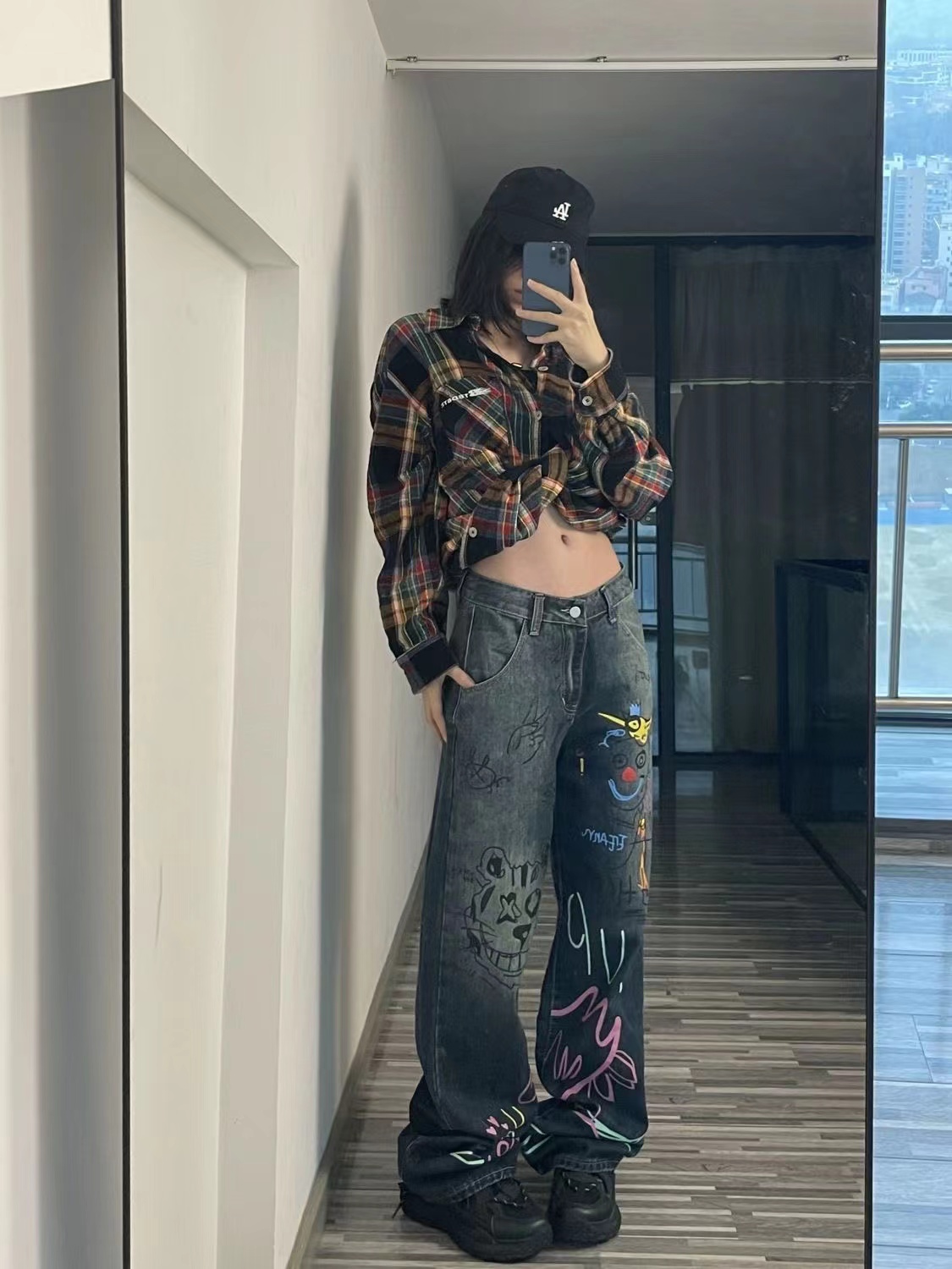 デニムパンツ ビジュー付き