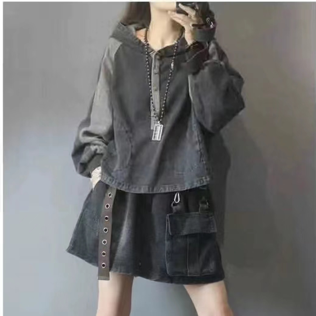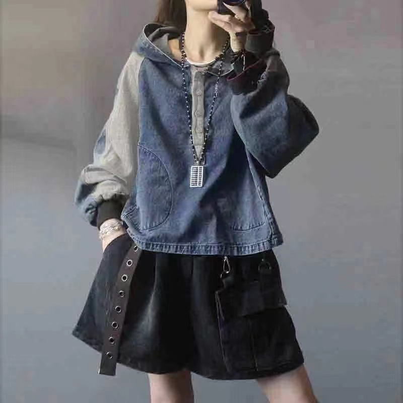 デニム パーカー レディース パッチワ