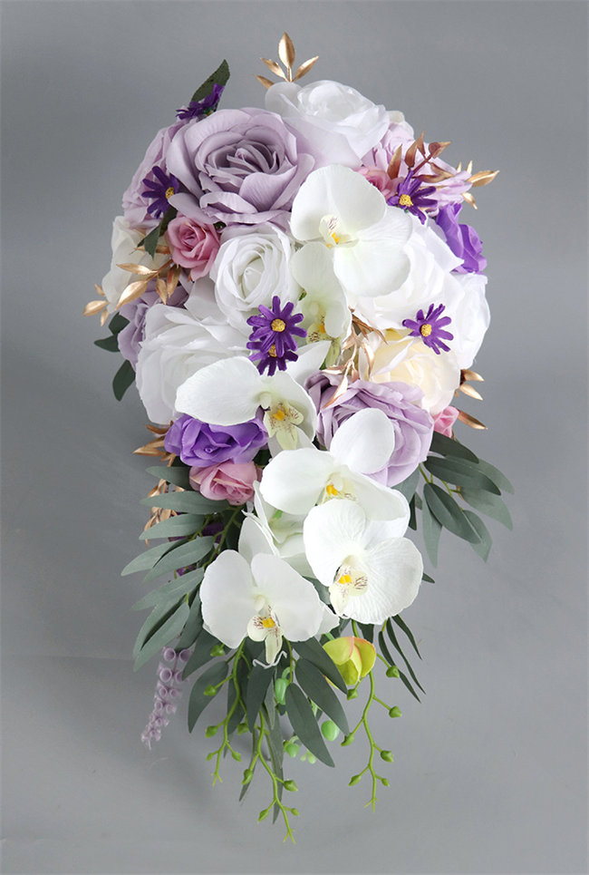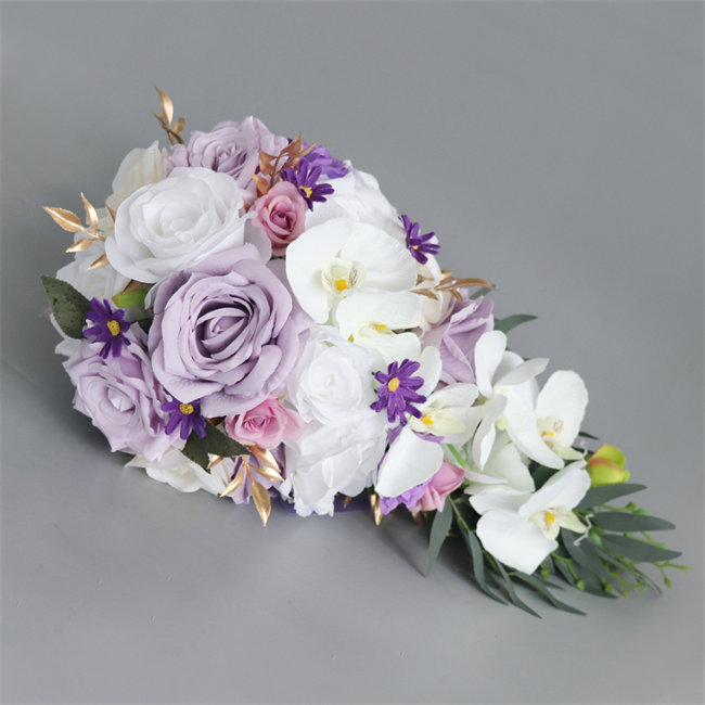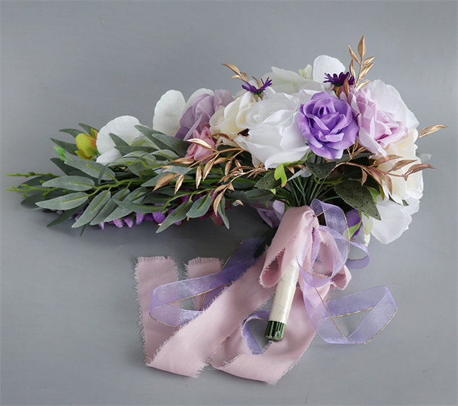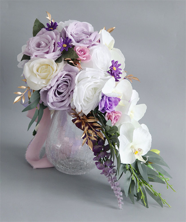 パープルローズウェディングブーケ 造花