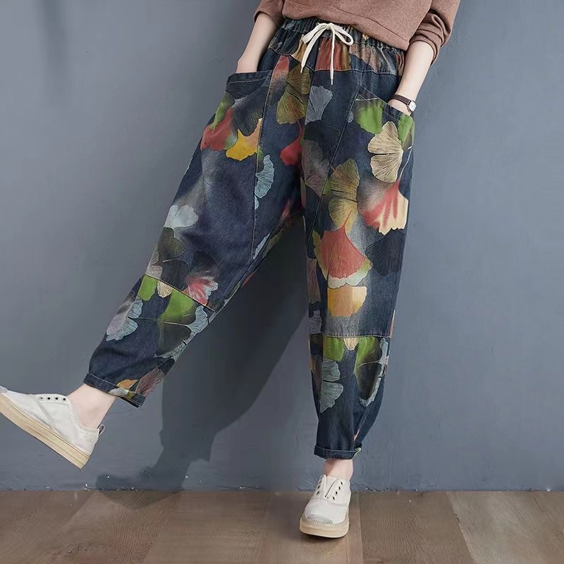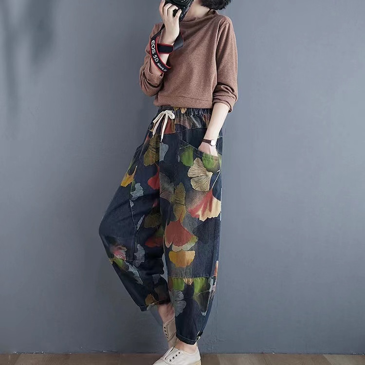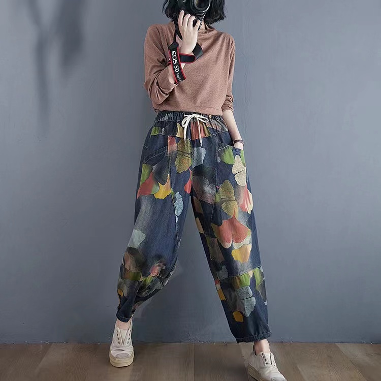 サルエルパンツ デニム ジーンズ 総柄