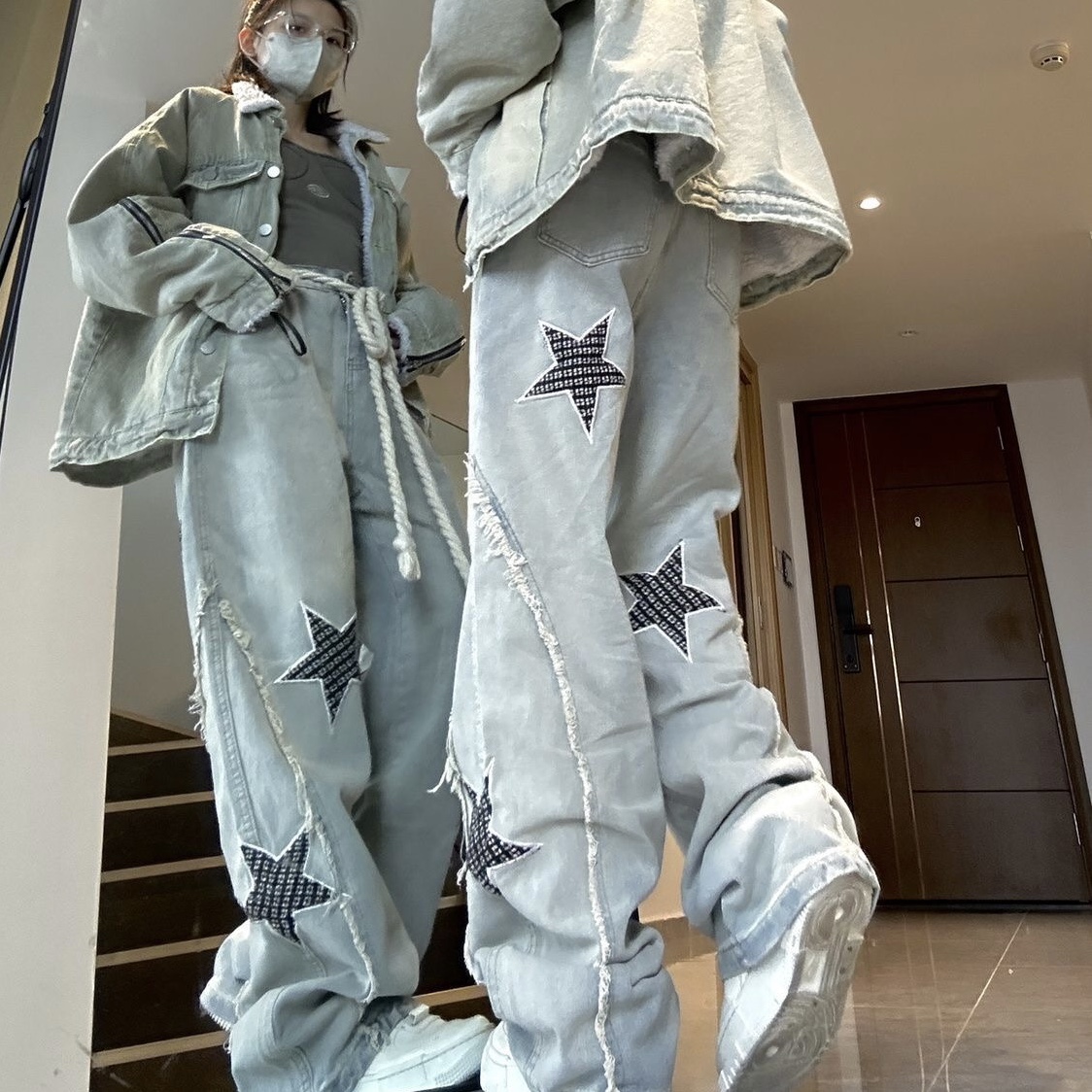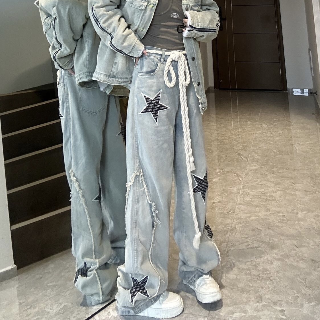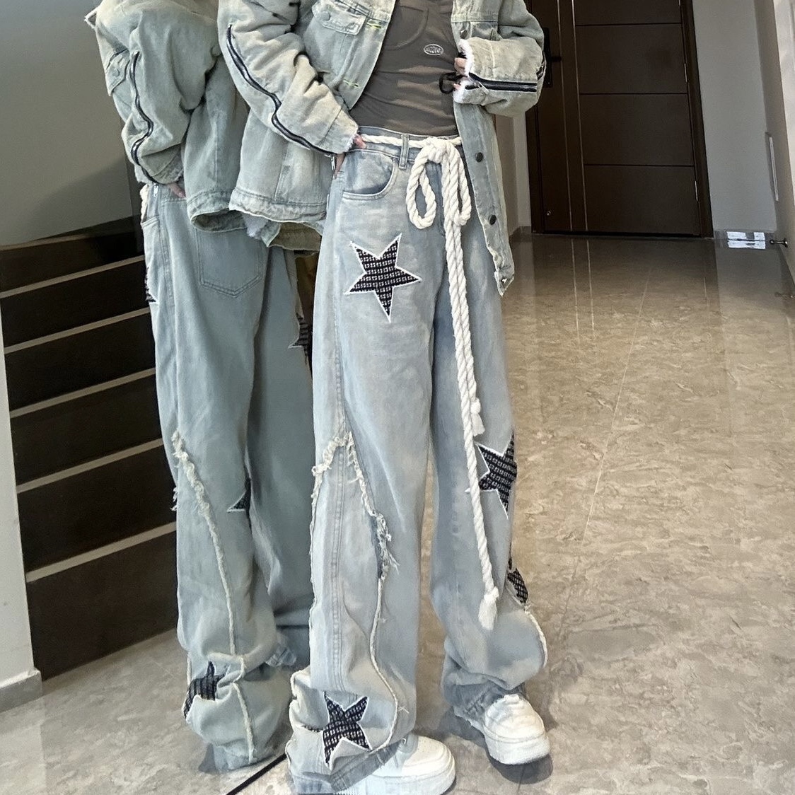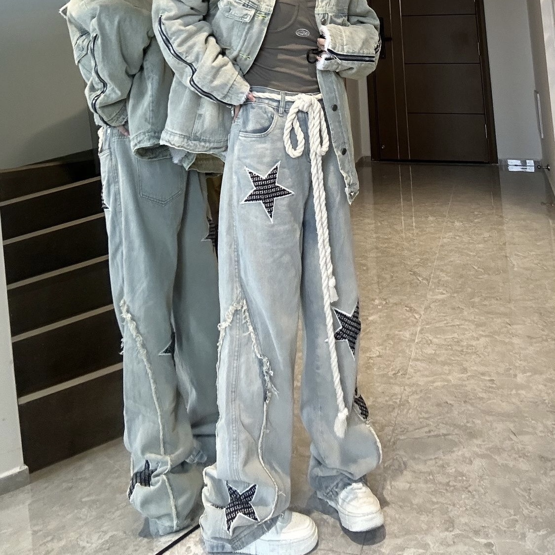 デニムパンツ ビジュー付き