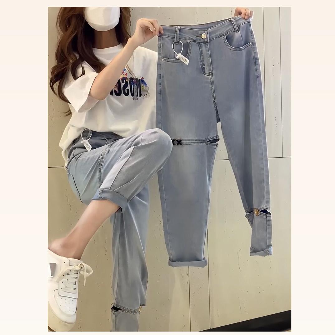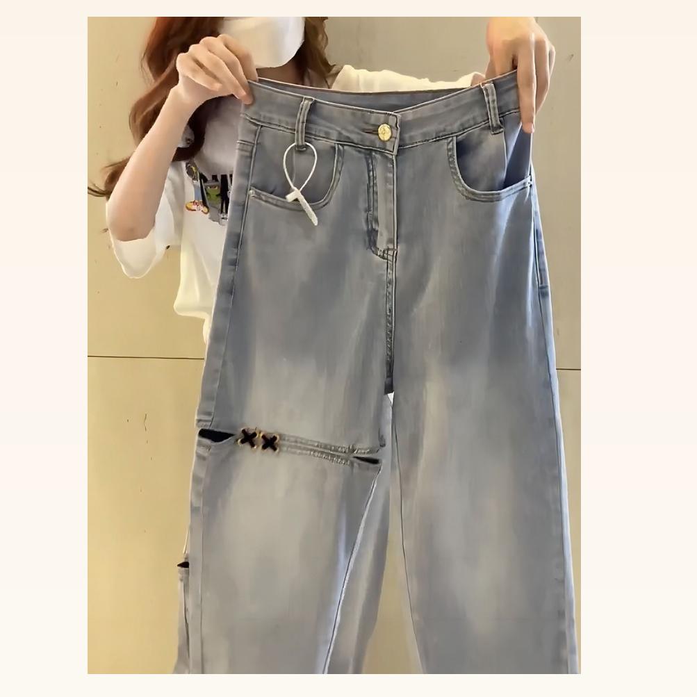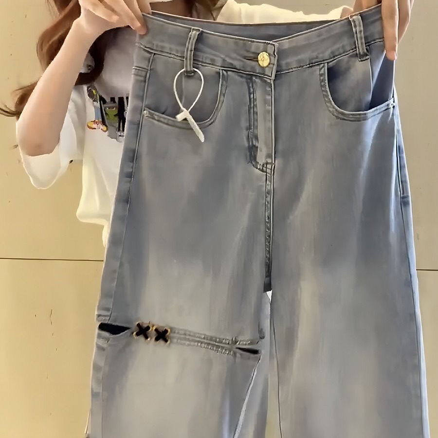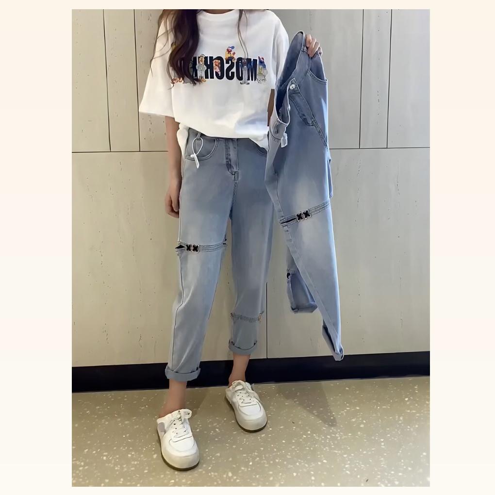 デニムパンツ ビジュー付き