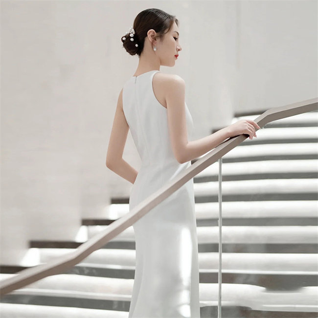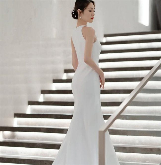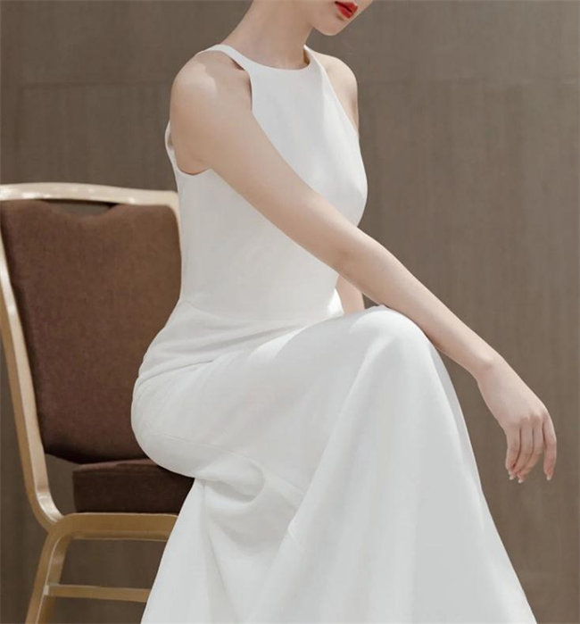ホワイト ウェディングドレスAライン ロングドレス イブニングドレスノースリーブトレーンvネック ファスナータイプxs~xlWedding