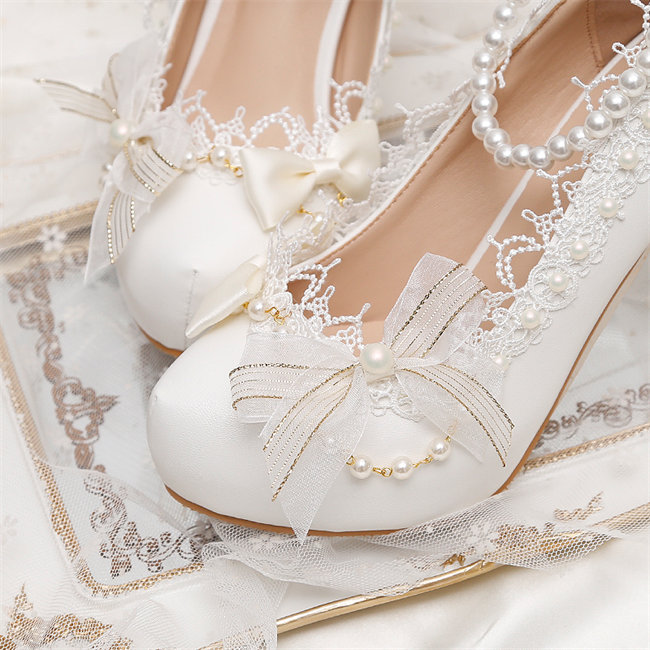 ホワイトストラップパンプスキラキラハイ