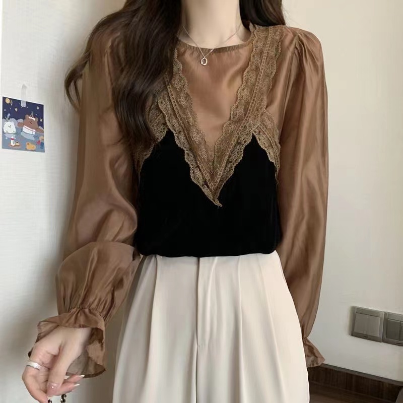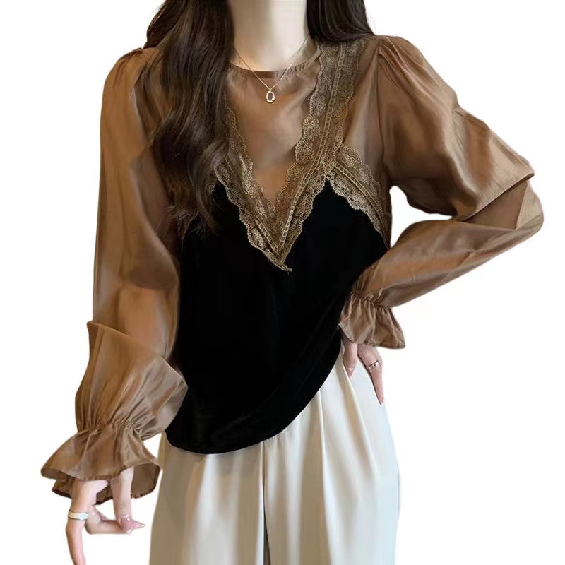 シフォンブラウス シアーブラウス ボリューム袖
