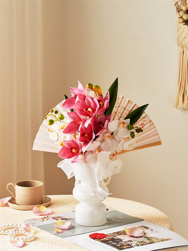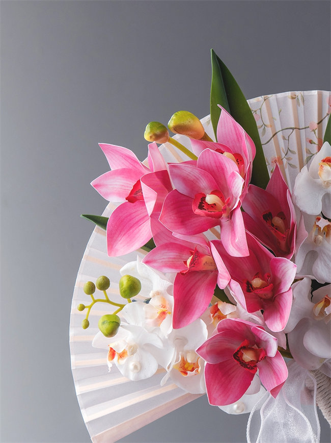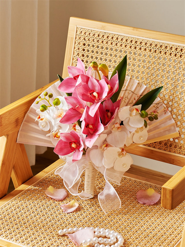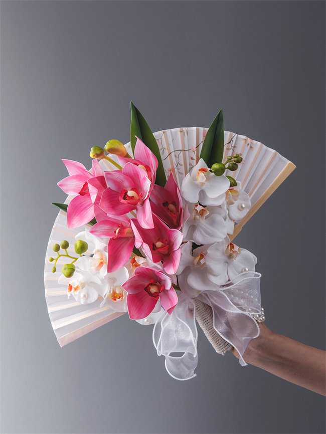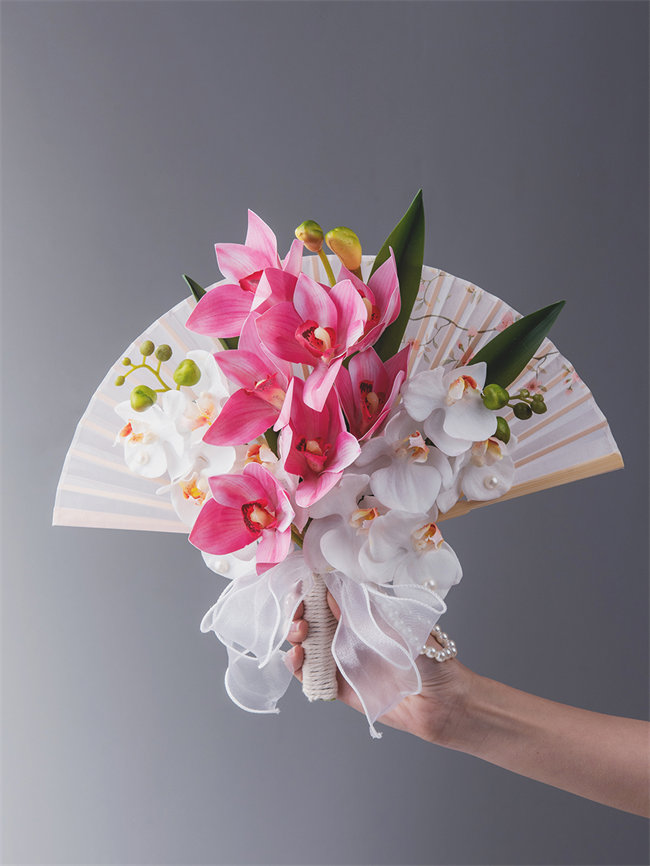 ピンク系和装花嫁のブーケ 扇子ブーケ
