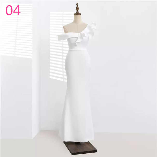 5色入荷 シングル肩 ウェディングドレスAライン ロングドレス ウェディングドレス レース 素地 ファスナータイプs~2xlWedding Dressお花嫁結婚式旅行撮影演出レディースウェディングドレ
