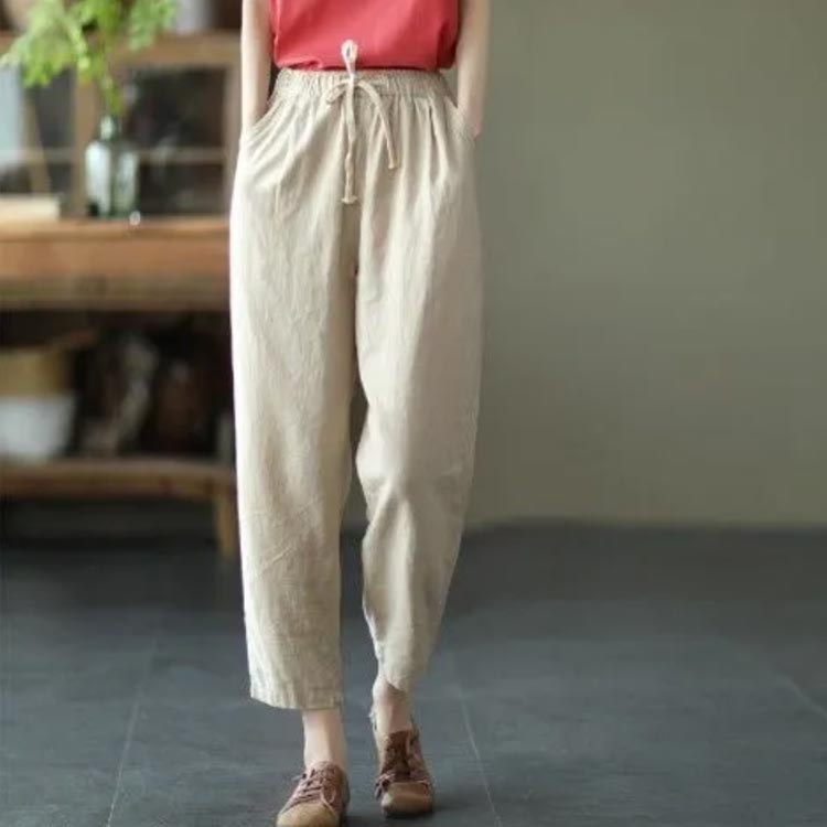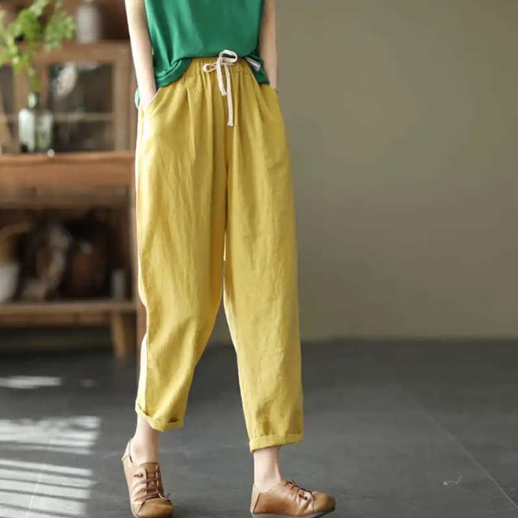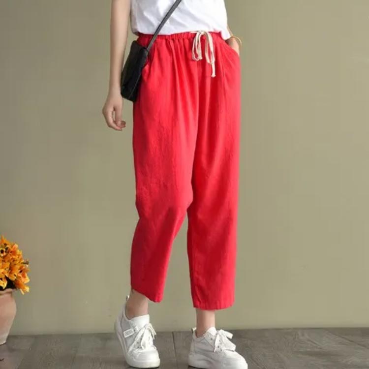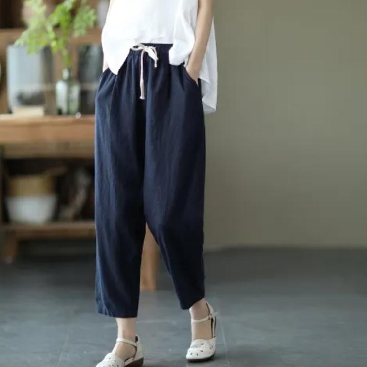 着やせ 9分丈 サルエルパンツ 綿 薄
