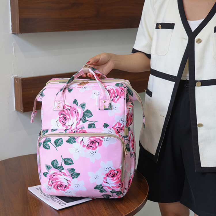 デザイン性と機能性を兼ね備えた可愛い花柄マザーズバッグ、ママの強い味方に間違いなしです。サイズFサイズについての説明F 約28*18*40cm ベッド展開時横幅約82cm ※上記サイズは平置き実寸になります。 サイズ表の実寸法は商品によって1-3cm程度の誤差がある場合がございます。素材オックスフォード色ネイビー ブラック ピンク備考●サイズ詳細等の測り方はスタッフ間で統一、徹底はしておりますが、実寸は商品によって若干の誤差(1cm~3cm )がある場合がございますので、予めご了承ください。