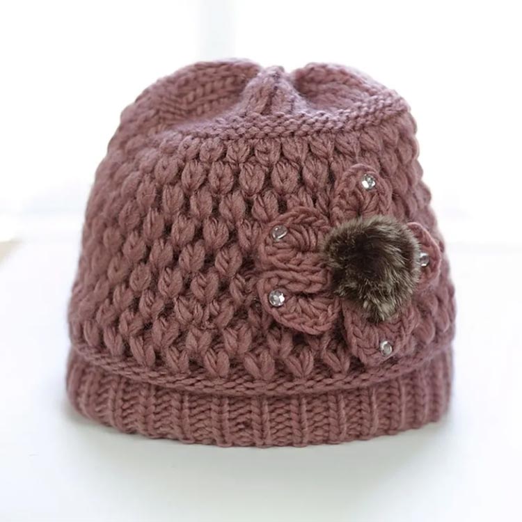 ニット帽 お花モチーフ 帽子 レディー