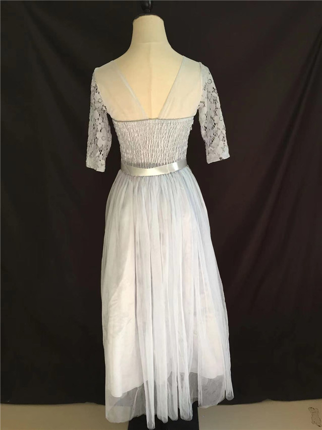 ライトブルー 七分袖袖あり マキシ丈、