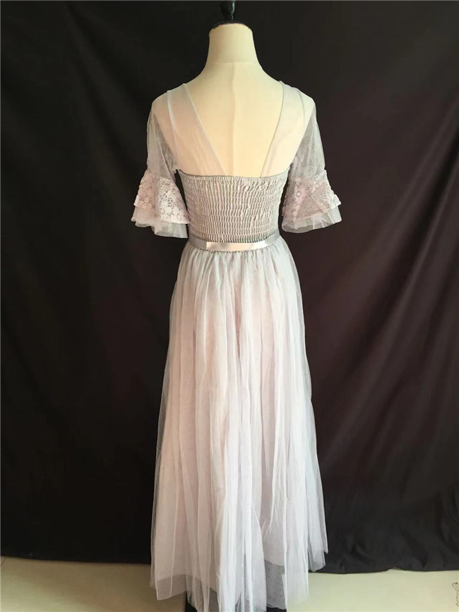 ライトグレー 半袖袖あり マキシ丈、ロ