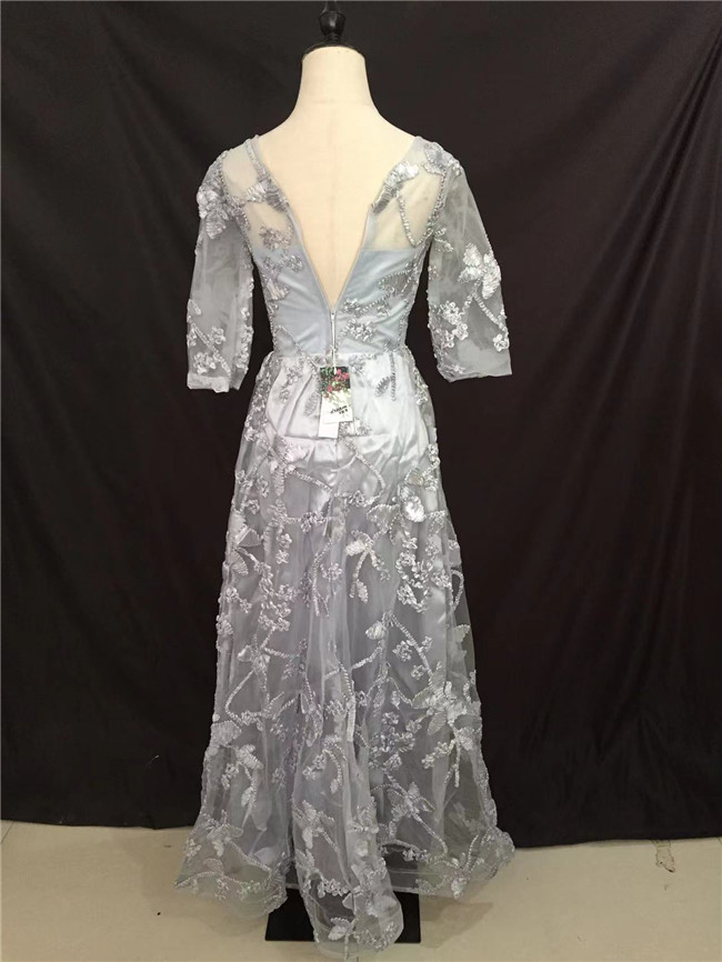 ライトグレー 七分袖袖あり マキシ丈、