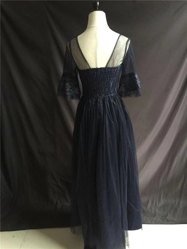 ネイビー 七分袖袖あり マキシ丈、ロン