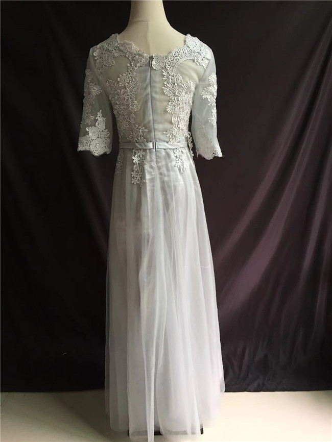 ライトグレー 半袖袖あり マキシ丈、ロ