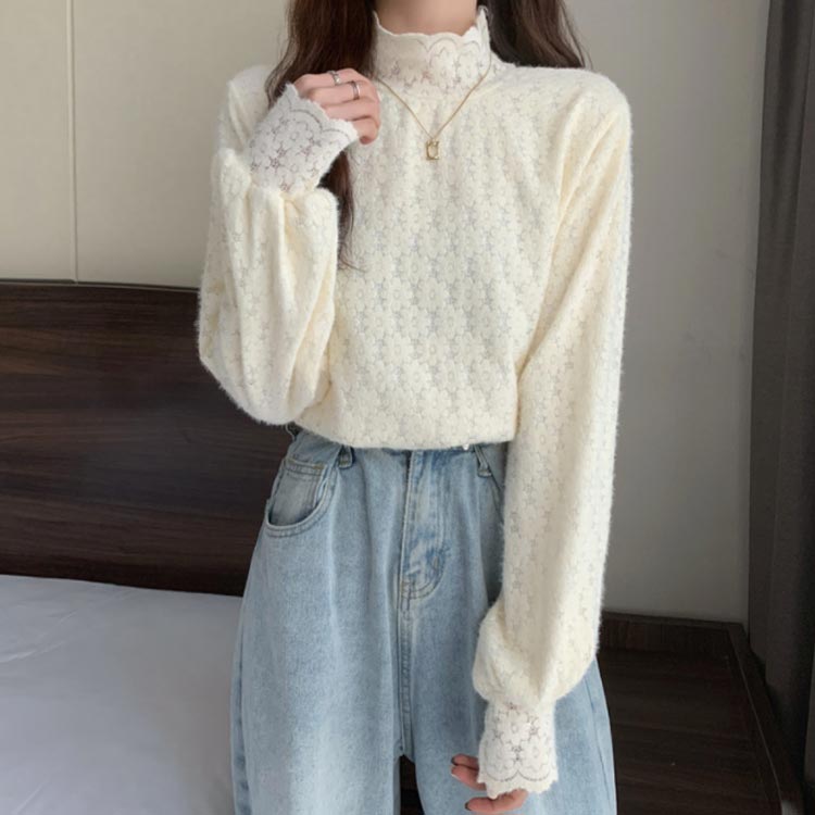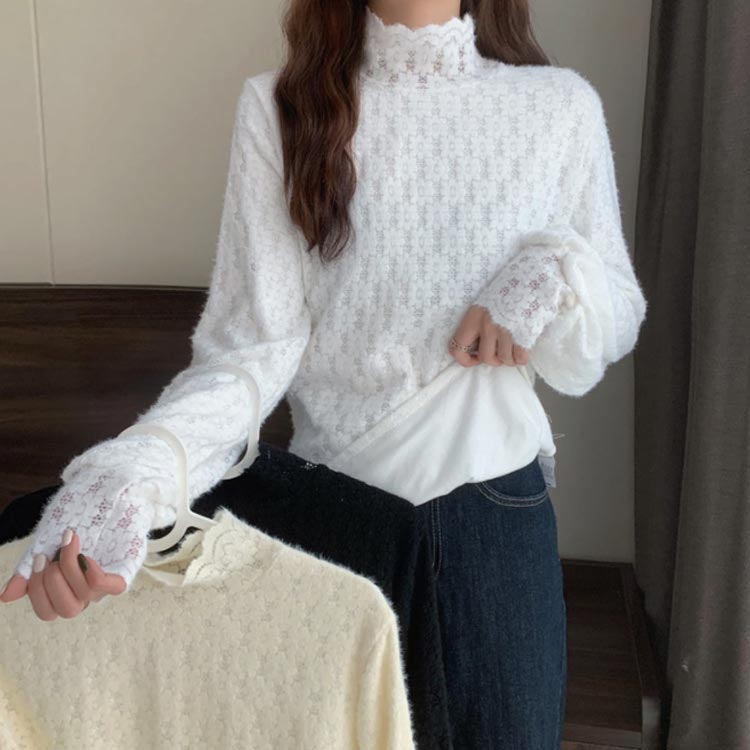 裏起毛 可愛い カットソー レース M