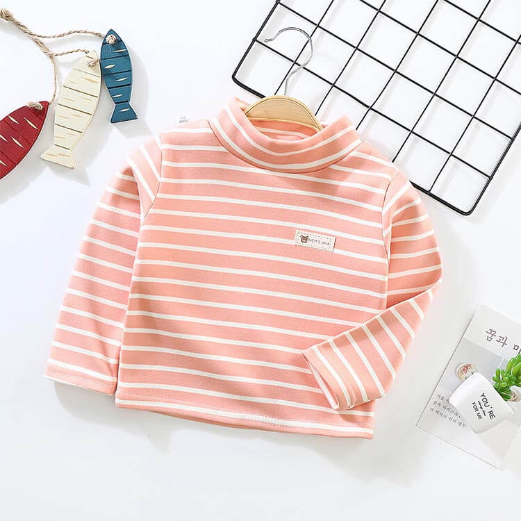 ハイネック 可愛い ボーダー柄カットソ