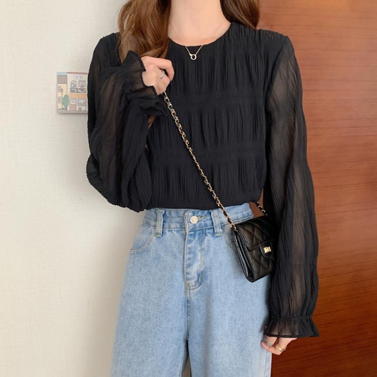シフォンブラウス シアーブラウス ボリューム袖