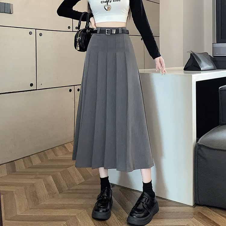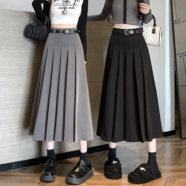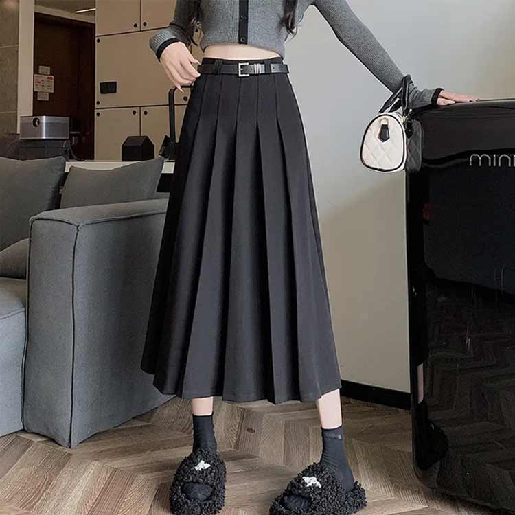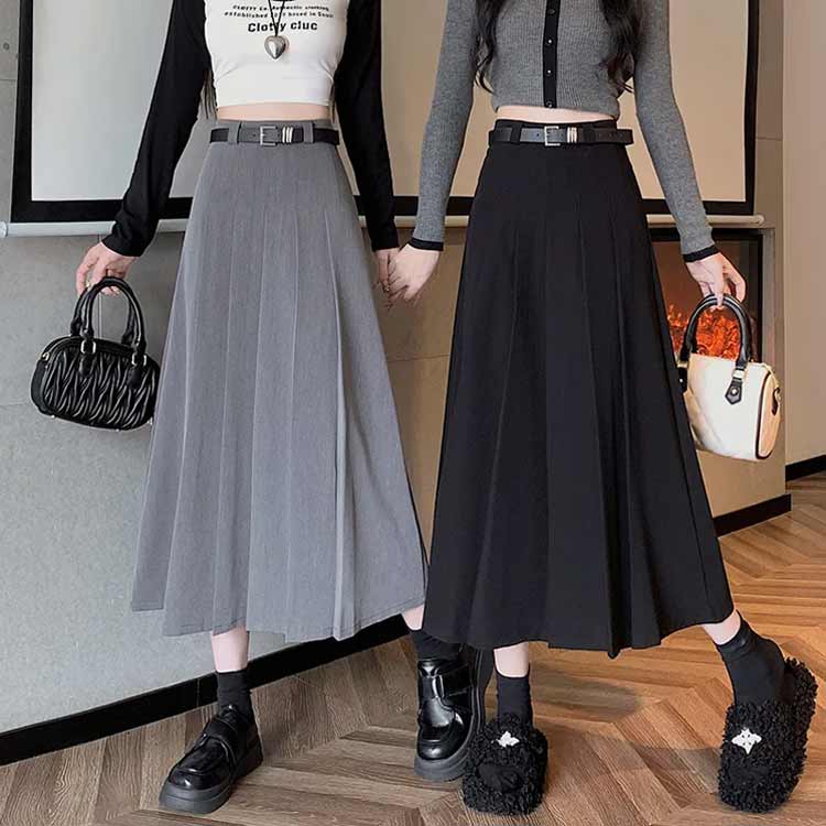 S~3XL ロング丈 プリーツスカート