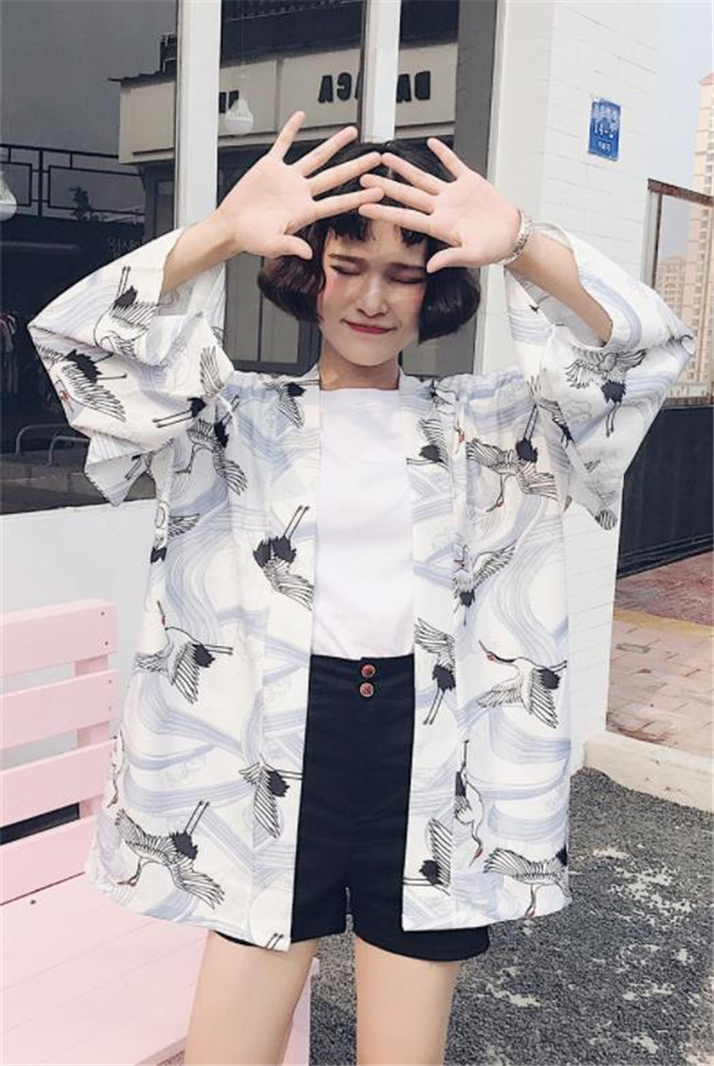6色展開フリーサイズ男女兼用 鶴柄 夏