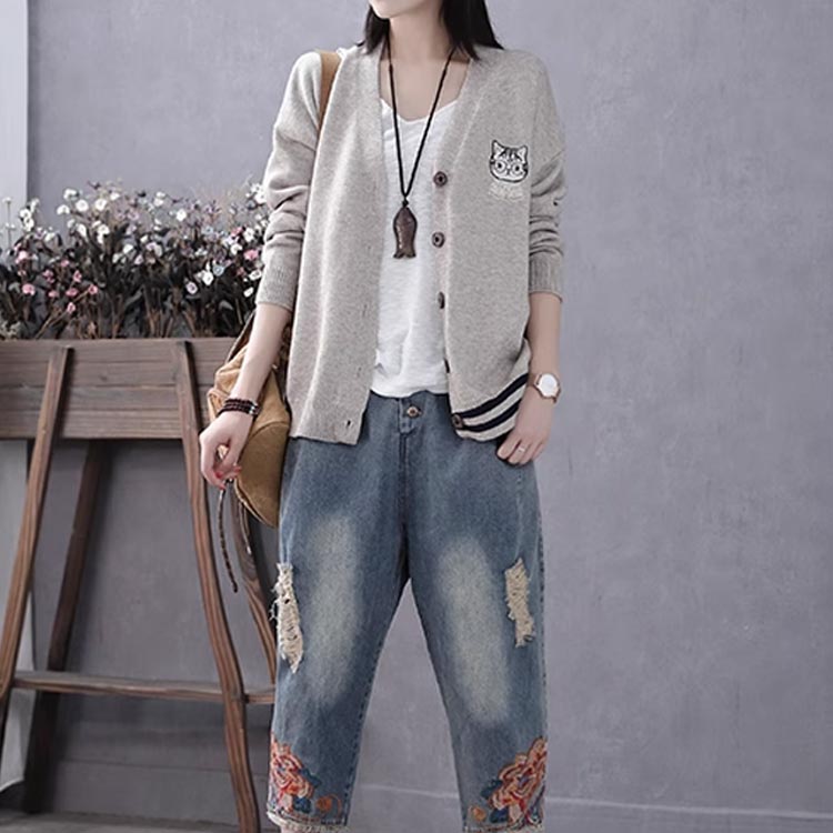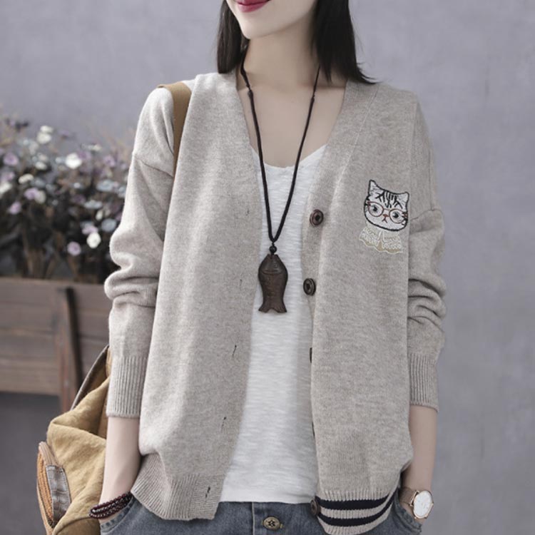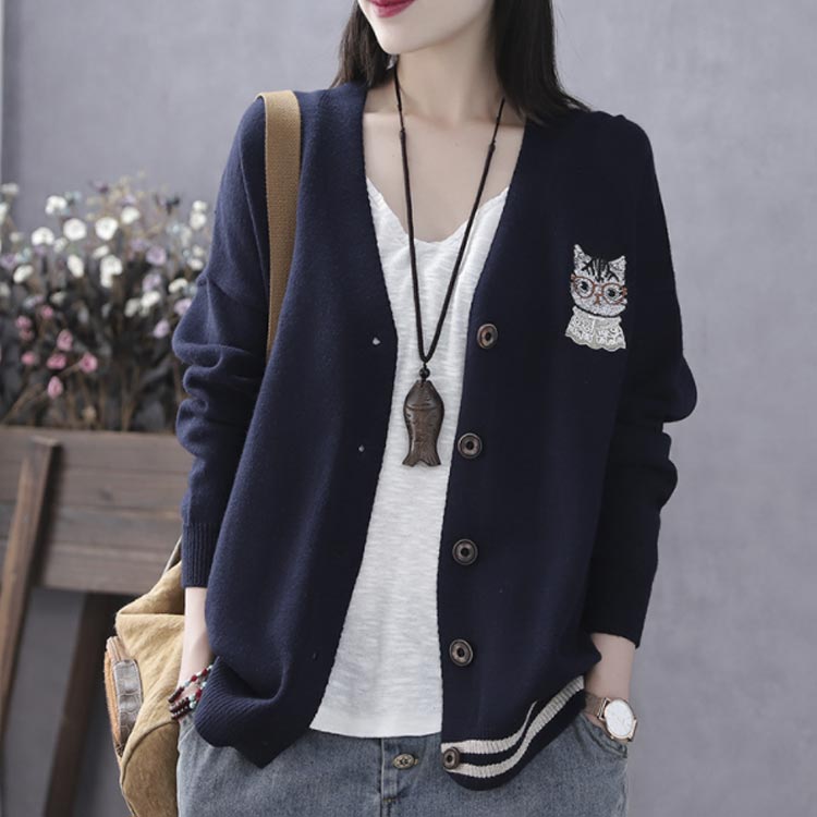 可愛い 体型カバー 刺繍カーディガン