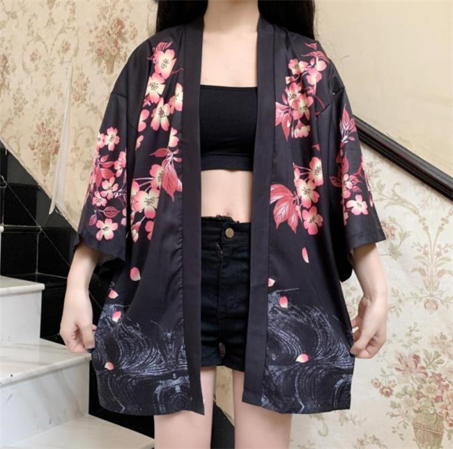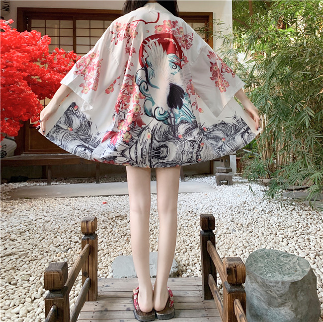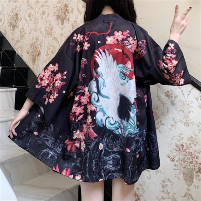 ブラック ホワイト男女兼用 鶴柄 花柄