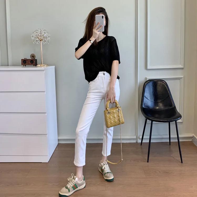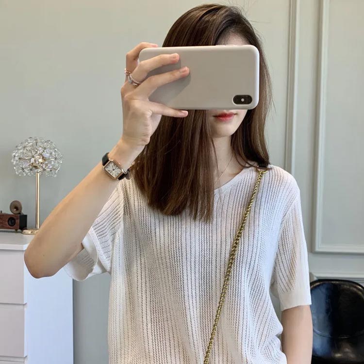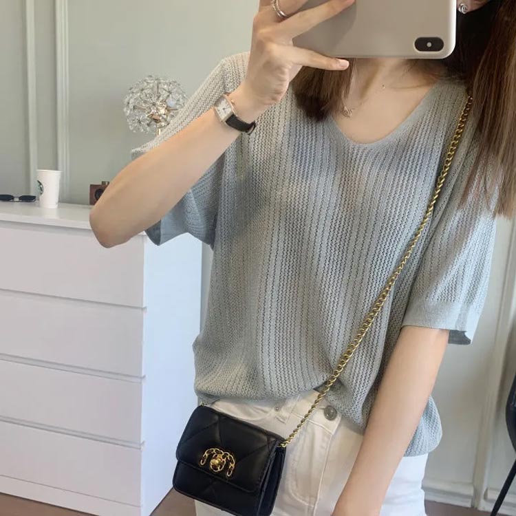S~2XL 5分袖 ニットトップス 薄