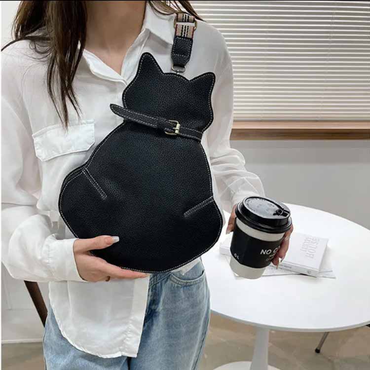 斜めがけバッグ 通学 猫型 大容量 デ