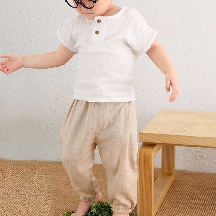 薄手 涼しい 冷房対策 綿麻 子供長ズ