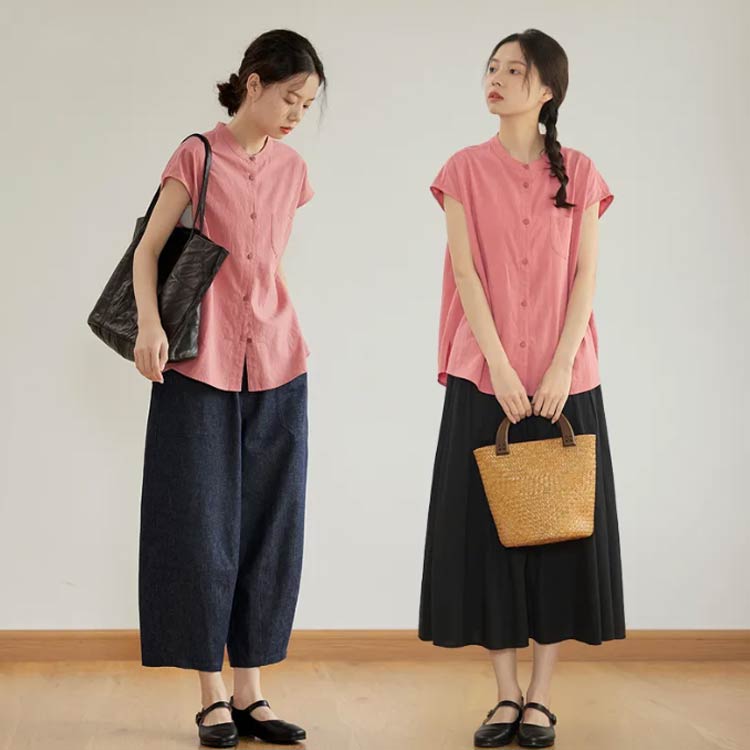 M~2XL フレンチスリーブブラウス